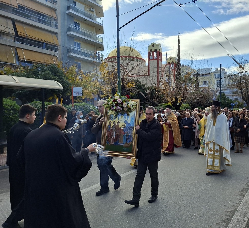 Ἀκολούθησε λιτάνευση τῆς ἱερᾶς εἰκόνος τῆς Ὑπαπαντῆς στοὺς δρόμους τῆς ἐνορίας.