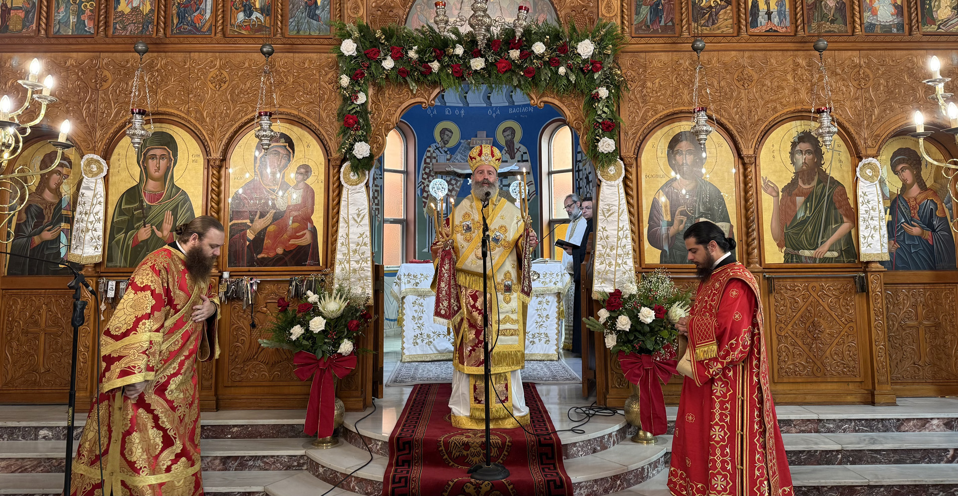 Την Κυριακή προ της Χριστού Γεννήσεως, 21 Δεκεμβρίου, ο Σεβασμιώτατος Αρχιεπίσκοπος Αυστραλίας κ.κ. Μακάριος επισκέφθηκε την Ενορία – Κοινότητα Αγίας Ευφημίας, στο Bankstown του Σύδνεϋ. Ο Σεβασμιώτατος χοροστάτησε στην Ακολουθία του Όρθρου και προεξήρχε της Θείας Λειτουργίας, ενώ προ της Απολύσεως αναφέρθηκε εν συντομία στο ευαγγελικό ανάγνωσμα της ημέρας (Ματθ. 1, 1-25), στο οποίο παρουσιάζεται η κατά σάρκα γενεαλογία του Ιησού Χριστού, και στη συνέχεια απηύθυνε πνευματικές συμβουλές προς το πολυπληθές εκκλησίασμα για την κατάλληλη προετοιμασία του ενόψει της επικείμενης, μεγάλης εορτής της Χριστιανοσύνης.