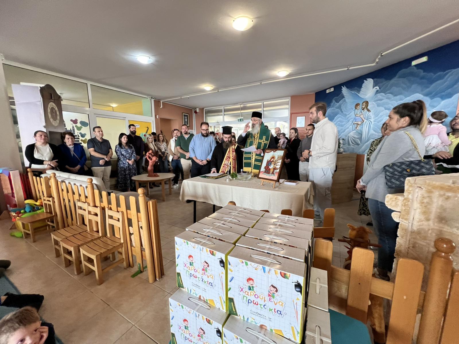 Στο τέλος του Αγιασμού, όλα τα παιδιά του σχολείου μας έλαβαν με πολλή χαρά ένα καλαίσθητο βαλιτσάκι με προϊόντα, ευγενική προσφορά της εταιρείας Care Direct. Ο Σεβασμιώτατος εξέφρασε τις θερμές του ευχαριστίες προς την εταιρεία για την ευγενική αυτή χειρονομία, τονίζοντας τη σημασία της έμπρακτης στήριξης στο έργο της τοπικής μας Εκκλησίας και της παιδείας των νέων μας.