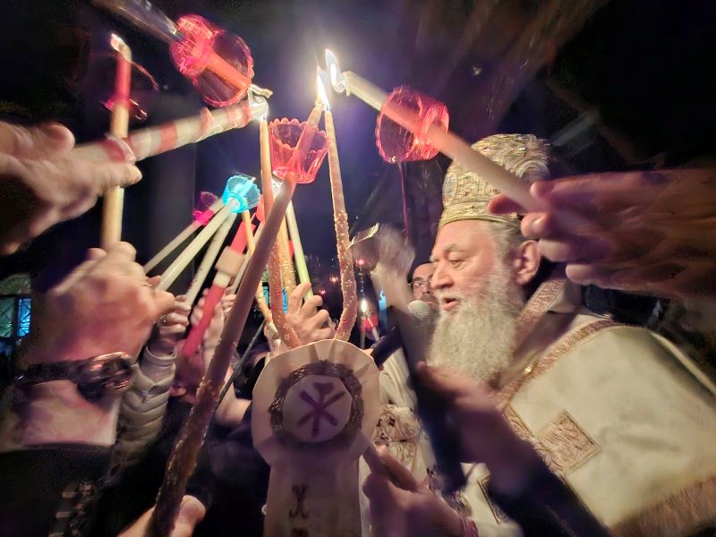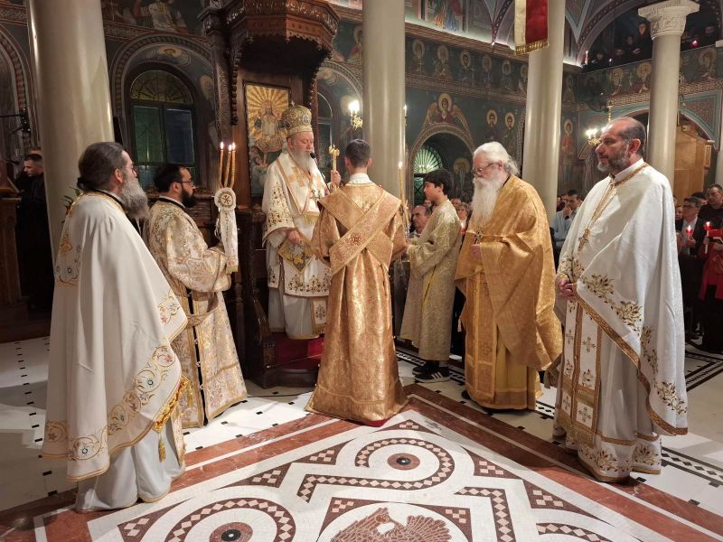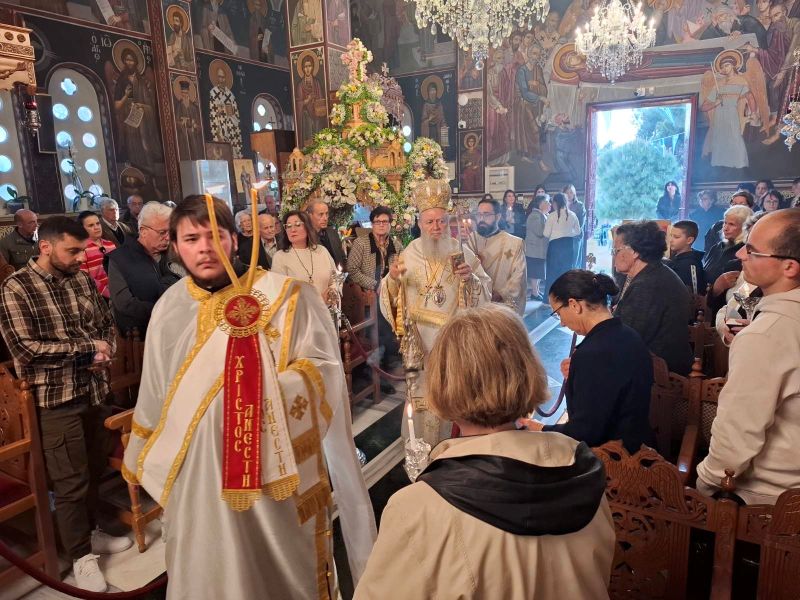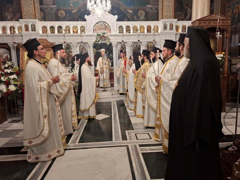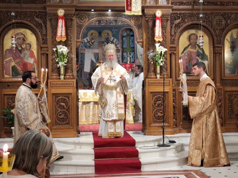 Στον Μητροπολιτικό Ιερό Ναό Αγίου Δημητρίου Χαλκίδος το βράδυ του Μεγάλου Σαββάτου ετελέσθη η Ακολουθία της Αναστάσεως και στη συνέχεια ο Όρθρος και η Αναστάσιμη Θεία Λειτουργία, στην οποία παρέμεινε και συμμετείχε πλήθος χριστιανών, οι οποίοι κοινώνησαν όλοι τα Άχραντα Μυστήρια.