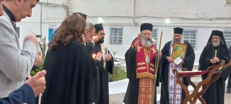 Το απόγευμα του Μεγάλου Σαββάτου, 11 Απριλίου 2026, προέστη στην τελετή της Αναστάσεως, στο Κατάστημα Κράτησης Χαλκίδος, πλαισιούμενος από τους Ιερείς του Ενοριακού Ι. Ναού Παμμεγίστων Ταξιαρχών Χαλκίδος, εκπροσώπων των αρχών του τόπου και ευχήθηκε εγκάρδια στους κρατουμένους συνανθρώπους μας.