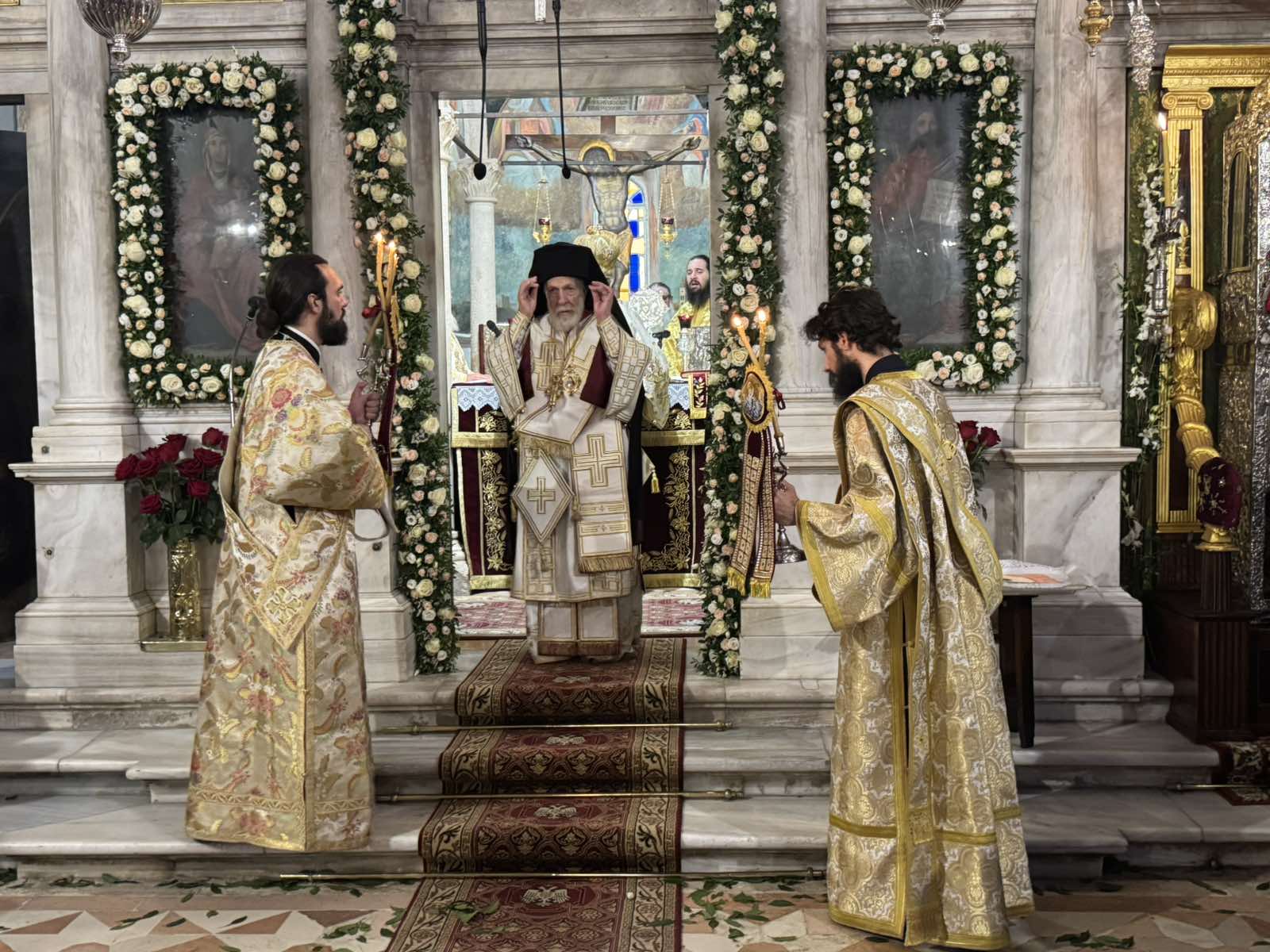 Τον θείο λόγο κήρυξε ο Σεβασμιώτατος Μητροπολίτης Γέρων Πριγκηποννήσων κ. Δημήτριος, ο οποίος μετέφερε στον λαό του Θεού ένα ταπεινό προσωπικό του βίωμα, το οποίο έζησε πριν από δεκατέσσερις ημέρες στην Νίκαια της Βιθυνίας, κατά τις πρόσφατες εκδηλώσεις για τη συμπλήρωση 1700 χρόνων από την σύγκληση εκεί της Α’ Οικουμενικής Σύνοδος. Αφόρμηση του βιώματος ήταν το ρητό θέλημα του Θεού, όπως αποτυπώνεται στον λόγο του Αγίου Ιακώβου του Αδελφοθέου: « Ο Θεός υπερηφάνοις αντιτάσσεται, ταπεινοίς δε δίδωσι χάριν». Ατενίζοντας την εύφορο γη των ακτών της λίμνης της Νικαίας, ο ίδιος ένιωσε μια σπάνια συγκίνηση εκ του ιστορικώς καταγεγραμμένου θαύματος της χάριτος του Θεού, η οποία αποτέθηκε στον Άγιο Σπυρίδωνα, αυτόν που συμμετείχε στην Α’ Οικουμενική Σύνοδο. «Εν απλότητι αληθεί καλλυνόμενος» συνέβαλε καθοριστικώς εν θαύματι στην αέναο επικράτηση της ορθοδόξου δογματικής διατυπώσεως περί της ομοουσίου τριαδικότητος του Θεού στο Σύμβολο της πίστεώς μας. Η θεοφιλής ταπείνωση του αγίου ανδρός, αρχικώς εγγάμου και πατρός γενομένου και εκ βοσκών ορμωμένου, υπήρξε αρκετή στον Θεό προκειμένου να επιδαψιλεύσει στον μακάριο επίσκοπο της Εκκλησίας να εκτελέσει το δικό Του Θέλημα προς οικοδομήν και ευστάθειαν της ταρασσομένης τότε εκ της αρειανής κακοδοξίας Εκκλησίας μας. Η βαθύτατα ένθεος και θαυματουργική παρέμβασις του Αγίου Σπυρίδωνος έλαβε χώρα ενώπιον εκατοντάδων επισκόπων που θεολογικώς προβληματίζονταν, δεν μπορούσαν όμως να αποφανθούν οριστικώς μέχρις ο απλούς αλλά θεοφιλής και θεοκίνητος νους του επισκόπου Τριμυθούντος να αξιωθεί διά της ταπεινής προαιρέσεως να υπερβεί τα όρια της ανθρώπινης αντιλήψεως και να ψαύσει το υπέρλογον θέλημα του Θεού.