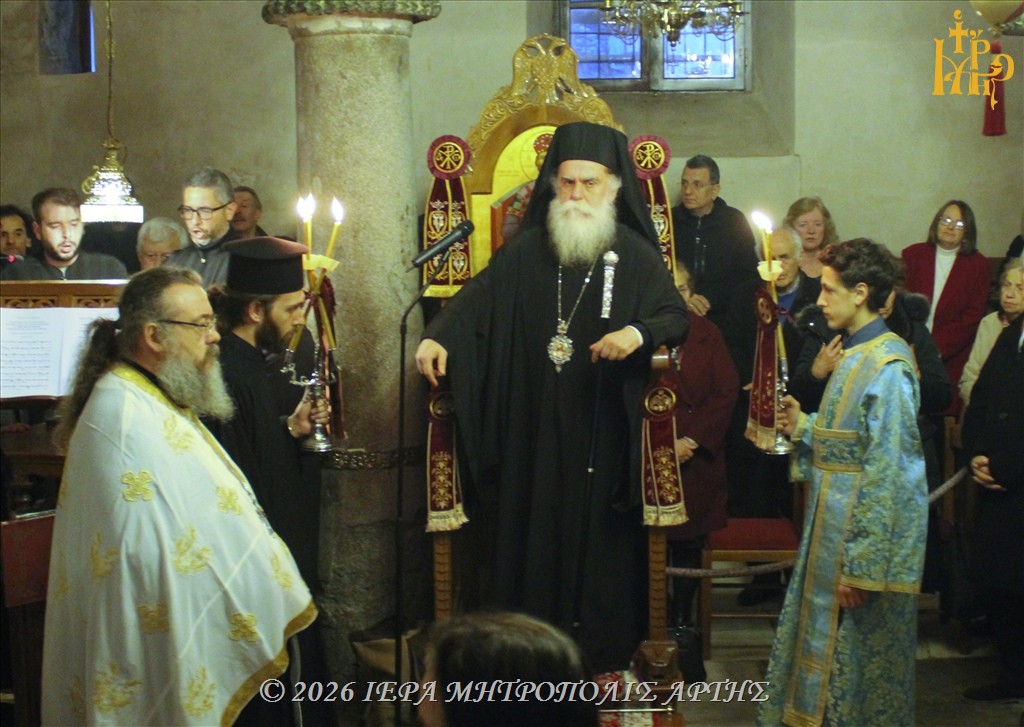 Την Κυριακή 15 Μαρτίου 2026, το απόγευμα, στον βυζαντινό Ιερό Ναό της Αγίας Θεοδώρας πόλεως Άρτης, ετελέσθη ο τέταρτος Κατανυκτικός Εσπερινός της Αγίας και Μεγάλης Τεσσαρακοστής, χοροστατούντος του Σεβασμιωτάτου Μητροπολίτου Άρτης κ. Καλλινίκου.