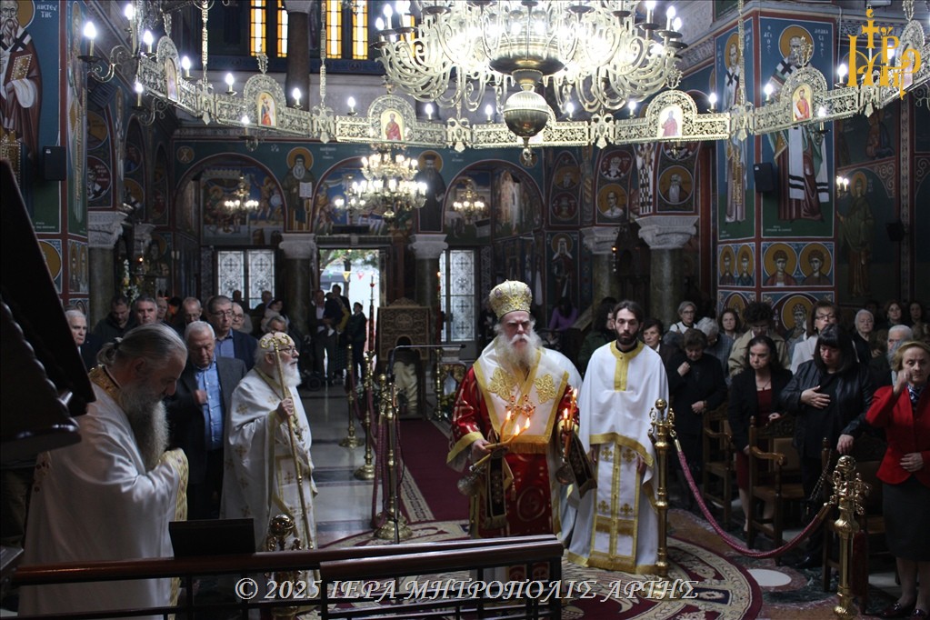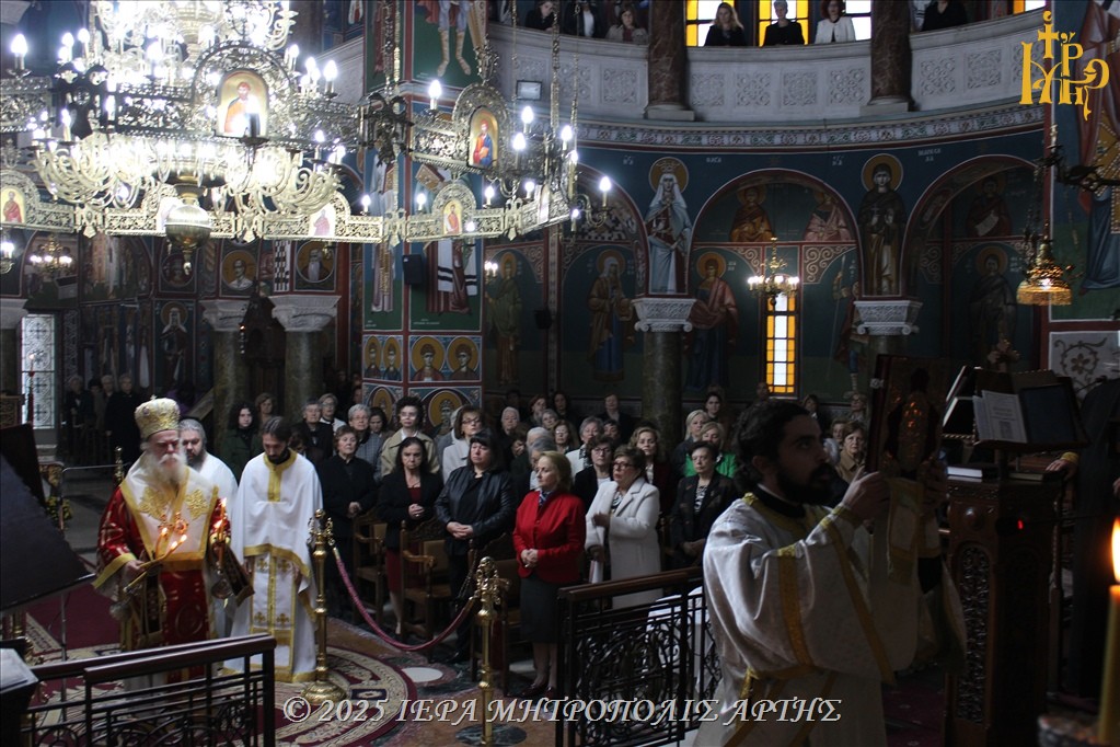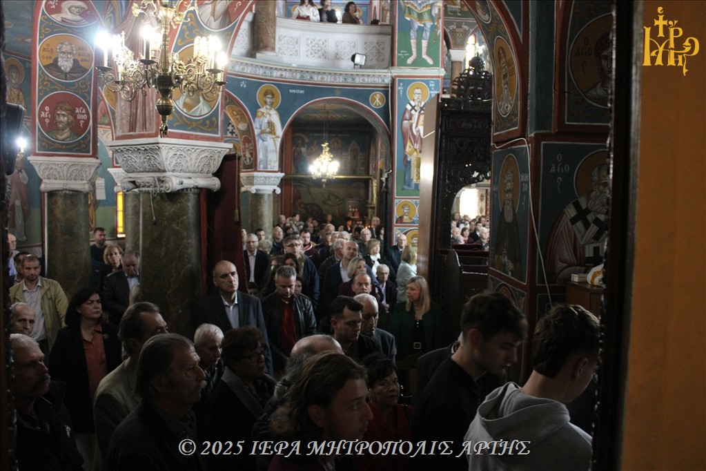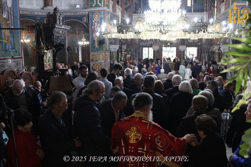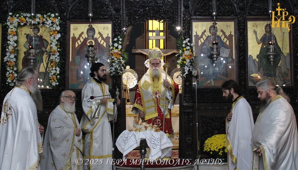 Της Αρχιερατικής Θείας Λειτουργίας προεξήρχε ο Σεβασμιώτατος Μητροπολίτης Άρτης κ. Καλλίνικος, πλαισιωμένος από Κληρικούς, ενώ πιστοί προσήλθαν στον Ναό, συμμετέχοντας προσευχητικά, στην εορτή και τιμώντας τον Άγιο Δημήτριο, ο οποίος αποτελεί φωτεινό παράδειγμα πίστεως, ανδρείας και μαρτυρικής αγάπης προς τον Χριστό.