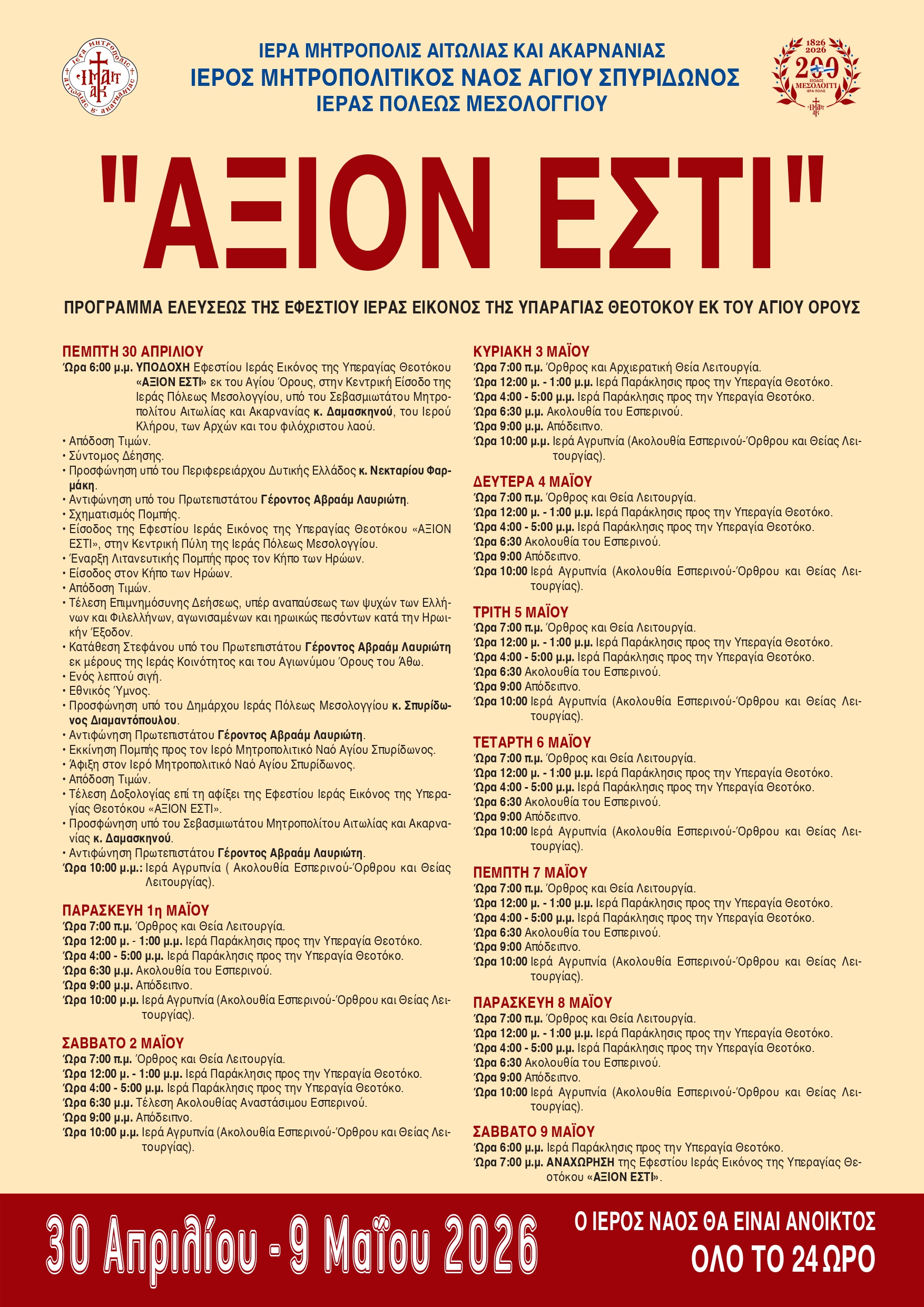 Η 172η Επέτειος της Επανάστασης της Ηπείρου στη Μεγαλόχαρη Άρτης