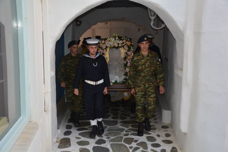 Με εκκλησιαστική τάξη και κάθε επισημότητα εορτάσθηκε η Πολιούχος της Νάξου Παναγία η «Χρυσοπολίτισσα», στον Πανηγυρίζοντα Ιερό Μητροπολιτικό Ναό της Ζωοδόχου Πηγής.