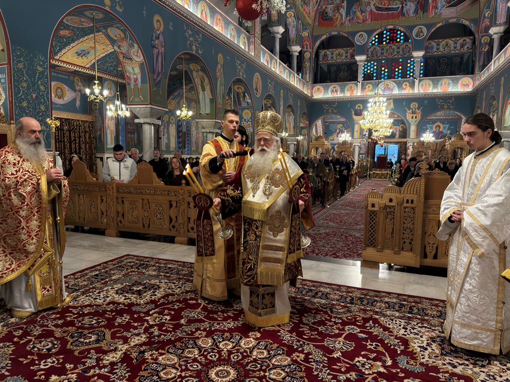 Συνεχίζοντας, ο Σεβ. Ποιμενάρχης μας στάθηκε ιδιαίτερα στο μυστήριο της Θείας Ευχαριστίας, επισημαίνοντας ότι «ο Χριστός που γιορτάζουμε σε λίγες μέρες τη Γέννησή Του, έρχεται κάθε φορά πάνω στην Αγία Τράπεζα και γεννιέται ξανά σε κάθε Θεία Λειτουργία». Τόνισε ότι «εκεί γεννήθηκε ο Χριστός, εκεί σταυρώθηκε και αναστήθηκε και αυτό το Σώμα είναι μέσα στο Άγιο Ποτήριο», υπογραμμίζοντας πως «ο Χριστός γεννιέται κάθε φορά, σταυρώνεται κάθε φορά και ανασταίνεται κάθε φορά». Μέσα σε αυτό το πλαίσιο, εξήγησε ότι «τα Χριστούγεννα τα γιορτάζουμε ακριβώς για να θυμόμαστε τι σημαίνουν», γι’ αυτό και τα ονομάζουμε «τη Μητρόπολη των εορτών», ενώ σημείωσε ότι η σημερινή παρουσία των πιστών στον ναό δείχνει την πίστη και την προετοιμασία για τη μεγάλη εορτή της Γεννήσεως του Χριστού.
