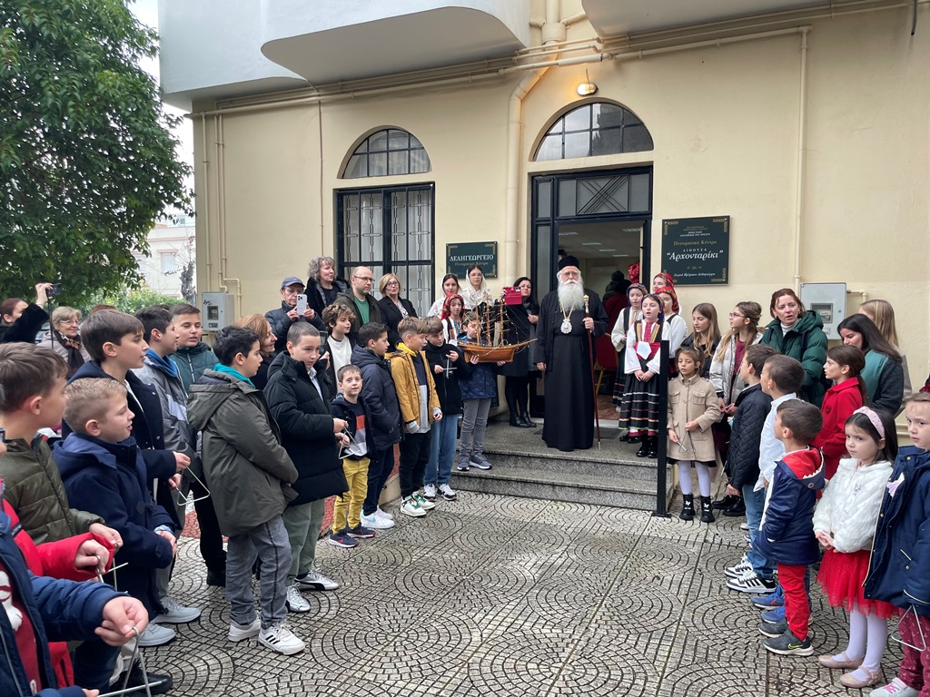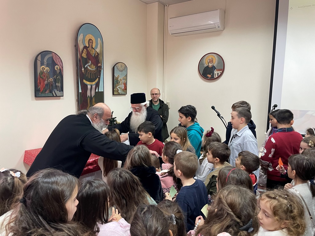 Μετά το «Δι’ ευχών», τα παιδιά των Κατηχητικών Σχολείων της Αναλήψεως έψαλαν τα κάλαντα στον Σεβασμιώτατο, ενώ η χορευτική ομάδα χόρεψε παραδοσιακούς χορούς των Χριστουγέννων. Τέλος μοίρασε δώρα σε όλα τα παιδιά.