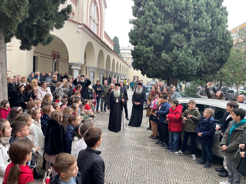 Στον Ιερό Ναό Αναλήψεως του Χριστού Βόλου λειτούργησε σήμερα, Κυριακή προ των Χριστουγέννων, ο Σεβ. Μητροπολίτης Δημητριάδος κ. Ιγνάτιος, παρουσία του συνόλου των παιδιών των κατηχητικών συντροφιών της ενορίας και πλήθους πιστών.