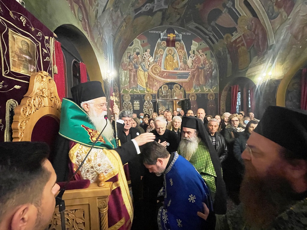 Στο τέλος του Εσπερινού, ο Σεβασμιώτατος χειροθέτησε Πρωτοπρεσβύτερο τον Εφημέριο του Ναού π. Γεώργιο Αναγνωστούλη, τον οποίο ευχαρίστησε για την ευδόκιμη και πολυετή διακονία του στον Άγιο Αντώνιο, ενώ ως Νομικός και γλωσσομαθής, θα μπορούσε να ακολουθήσει άλλον δρόμο στην ζωή του. Εξήρε την πιστότητα, την απλότητα, το ήθος, την τιμιότητά του και το υψηλό αίσθημα ευθύνης, που τον διακρίνει και δεν είναι πάντοτε δεδομένο στους ανθρώπους. Αναφέρθηκε και στην διακονία του στις διοικητικές υπηρεσίες της Μητροπόλεως, ως υπεύθυνος του Αρχείου της Τοπικής μας Εκκλησίας, το οποίο εξαιρετικά επιμελείται. Θύμισε, τέλος, ότι ο Σταυρός, που θα φέρει πλέον ο π. Γεώργιος, «δεν είναι κόσμημα, αλλά η υπενθύμιση ότι φέρουμε στους ώμους μας τον Σταυρό του Χριστού, τις αμαρτίες των ανθρώπων, όπως έπραξε Εκείνος, ότι ο δρόμος μας πρέπει να είναι αυτός της θυσίας και της προσφοράς, όπως του Χριστού, που οδηγεί στην Ανάσταση».