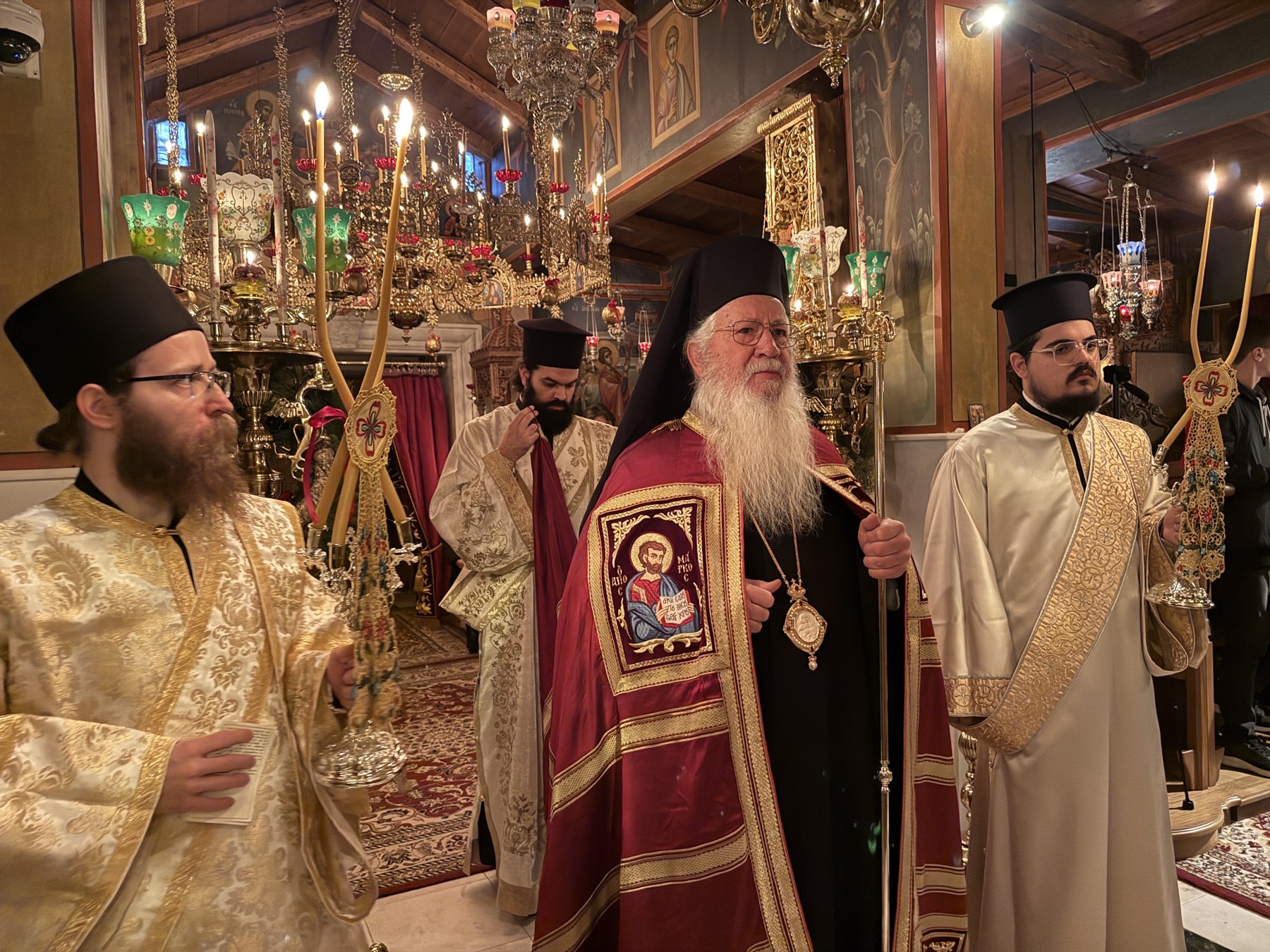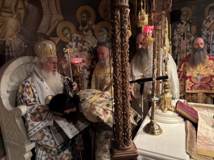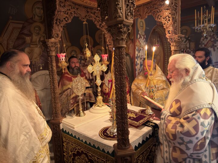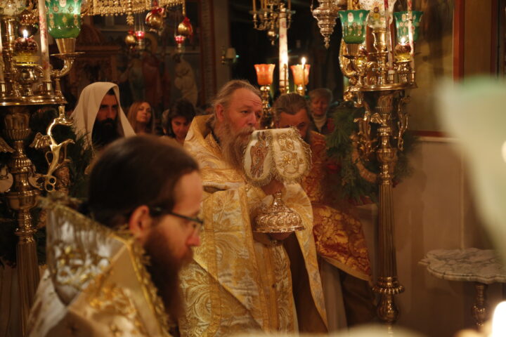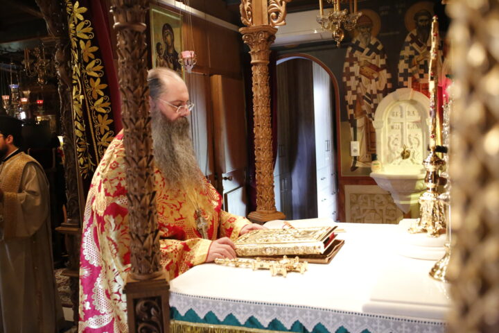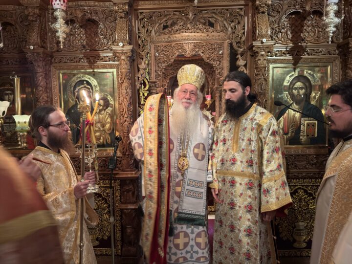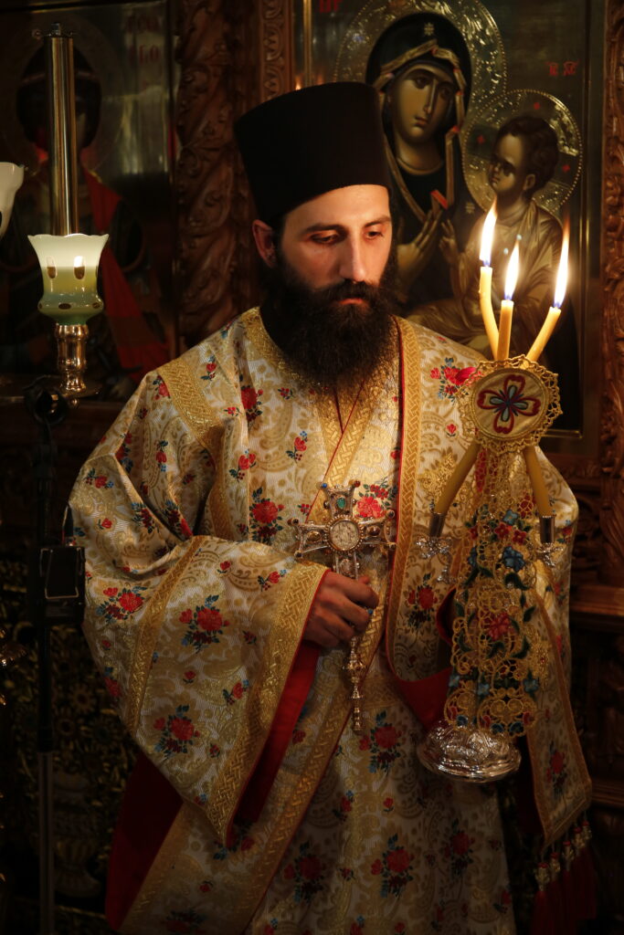 Ο Σεβασμιώτατος στην ομιλία του αναφέρθηκε στα τρία γεγονότα τα οποία εορτάζουμε, την ανάμνηση των Εγκαινίων του Καθολικού, την Σύναξη της Παναγίας της Ελεούσας που τιμά η Μονή μαζί με την ανάμνηση, αλλά και την χειροτονία του νέου Διακόνου.