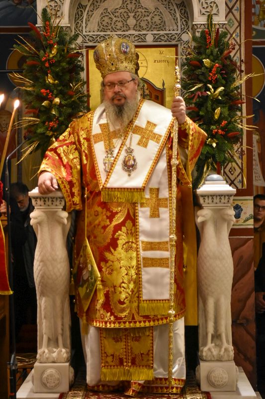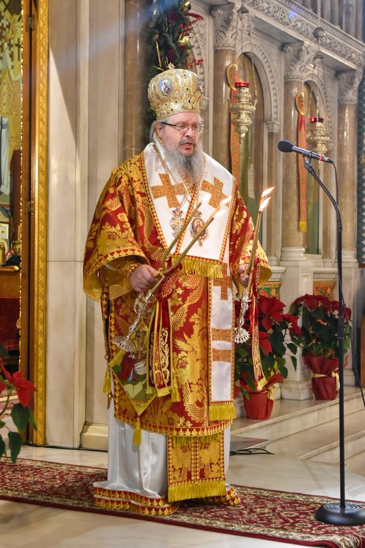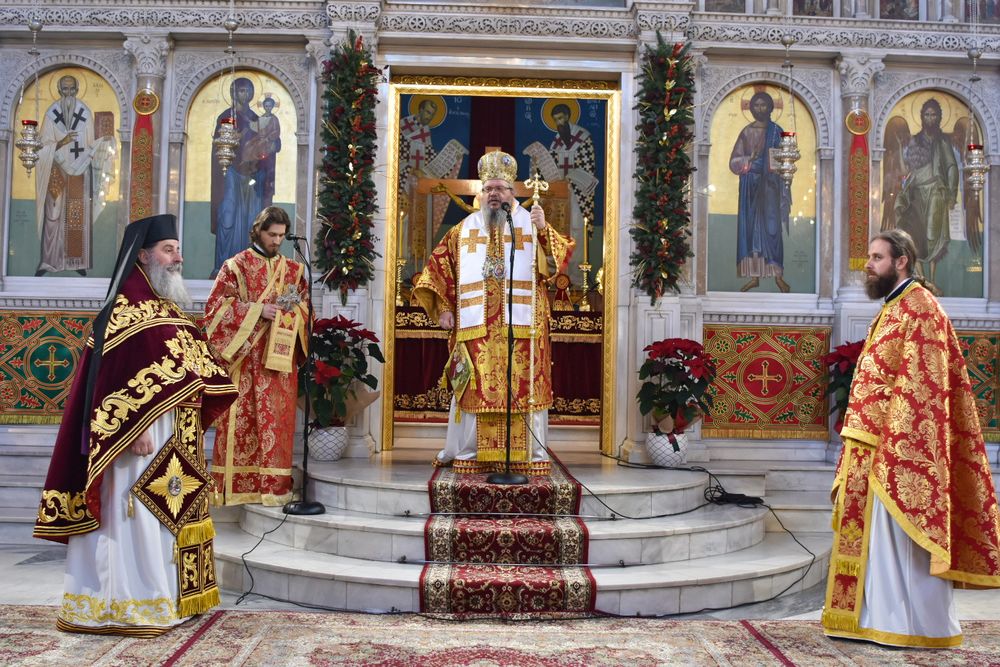 Η Ακολουθία, κατά εύρος, ξεκίνησε από τις πέντε το πρωί, ενώ ο Ναός γέμισε γρήγορα, λίγο μετά. Στα μάτια όλων έλαμπε η προσμονή και η χαρά της ελπίδος, ενώ φαινόταν πως το μήνυμα των Χριστουγέννων ακουμπούσε τις ψυχές όλων. Χαρακτηριστικό της Θείας Λειτουργίας, τα πολλά νήπια και παιδιά, τα οποία έσπευσαν να κατακλύσουν τον Ιερό Ναό, ενώ κάποια από αυτά προσήλθαν και στο Ιερό Βήμα, ώστε να διακονήσουν κατά τη διάρκεια της Ακολουθίας. Παρά τη φυσιολογική για την παιδική ηλικία νύστα, η επαγρύπνηση και η παρατήρηση των τελουμένων, βοήθησαν τα παιδιά να ζήσουν και να χαρούν τα όσα γίνονταν στον Ναό. Οι χοροί των Ιεροψαλτών απέδωσαν με τρόπο μοναδικό τους ύμνους της ημέρας, συναρπάζοντας και κατανύσσοντας. Το μήνυμα των Χριστουγέννων αναγνώσθηκε στο Κοινωνικό, από τον προϊστάμενο του Ιερού Μητροπολιτικού Ναού, Πανοσιολ. Αρχιμανδρίτη κ. Ραφαήλ Ευαγγέλου. Στη συνέχεια ξεκίνησε η Θεία Κοινωνία, κατά την οποία μετέλαβε των Αχράντων Μυστηρίων σχεδόν το σύνολο του εκκλησιάσματος.