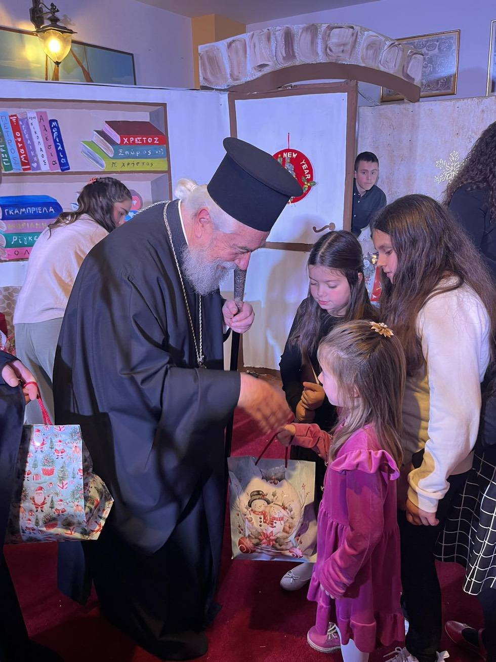 Στο τέλος της εορτής ο Σεπτός Ποιμενάρχης μας μίλησε με λόγους πατρικούς και πνευματικούς προς όλους μας και αφού μας ευχήθηκε για το Άγιο Δωδεκαήμερο μοίρασε δώρα σε όλα τα παιδιά μας.