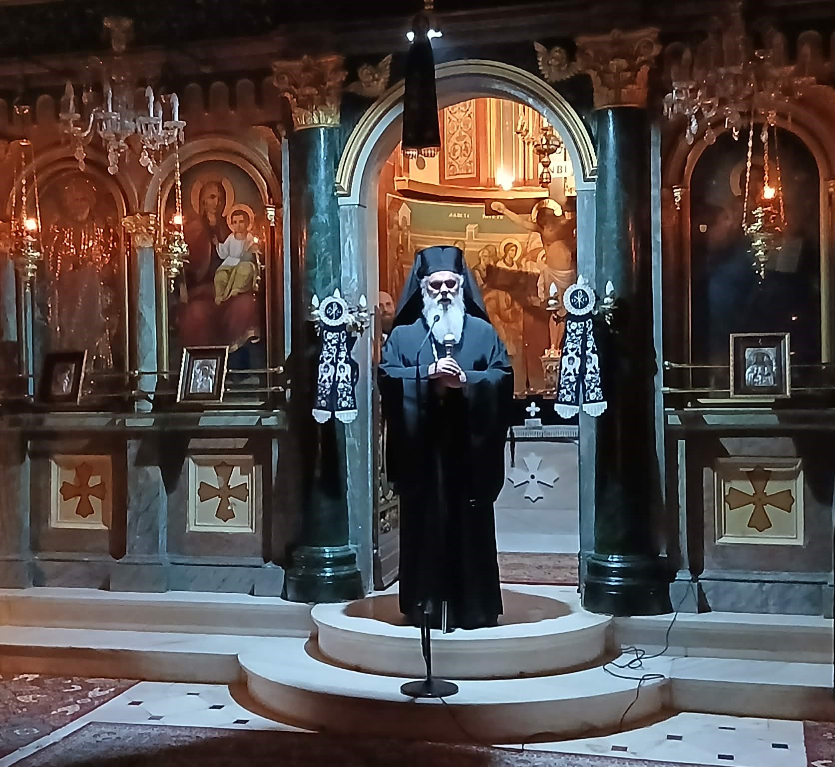 Κατά το πέρας του Κατανυκτικού Εσπερινού, ο Σεβασμιώτατος Μητροπολίτης Καλαβρύτων και Αιγιαλείας κ. Ιερώνυμος απηύθυνε σύντομο λόγο προς το εκκλησίασμα, αναφερόμενος στη θεολογική σημασία του Τιμίου Σταυρού και στη διαχρονική παρουσία του στη ζωή της Εκκλησίας και του σύγχρονου ανθρώπου. Τόνισε ότι ο Σταυρός του Κυρίου παραμένει πάντοτε σημείο ελπίδος και σωτηρίας μέσα στον κόσμο, ακόμη και αν συχνά δεν του δίνουμε την αρμόζουσα θέση στη ζωή μας, υπενθυμίζοντας στους πιστούς ότι η πορεία του χριστιανού είναι πάντοτε πορεία σταυροαναστάσιμη.
