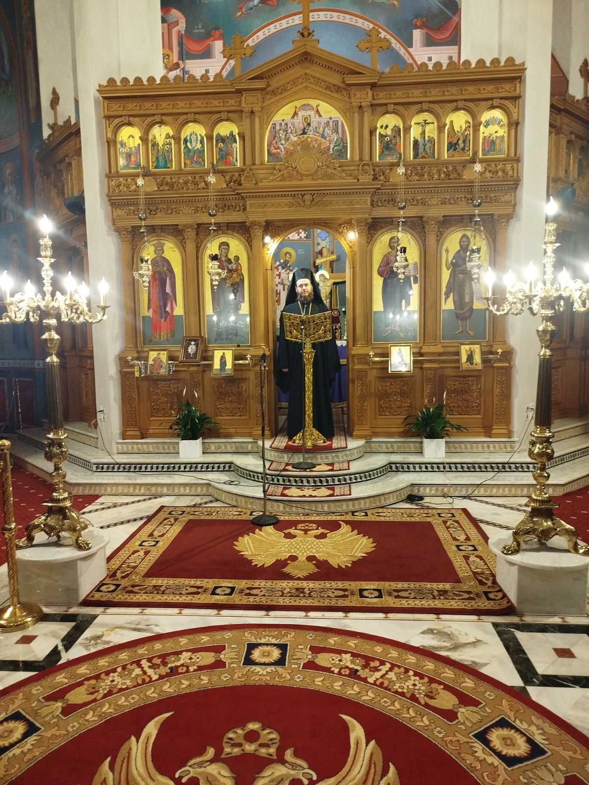 Κατά την Ακολουθία του Εσπερινού χοροστάτησε ο Σεβασμιώτατος Μητροπολίτης Μαντινείας και Κυνουρίας κ. Επιφάνιος, συγχοροστατούντος του Θεοφιλ. Επισκόπου Τεγέας κ. Θεοκλήτου.