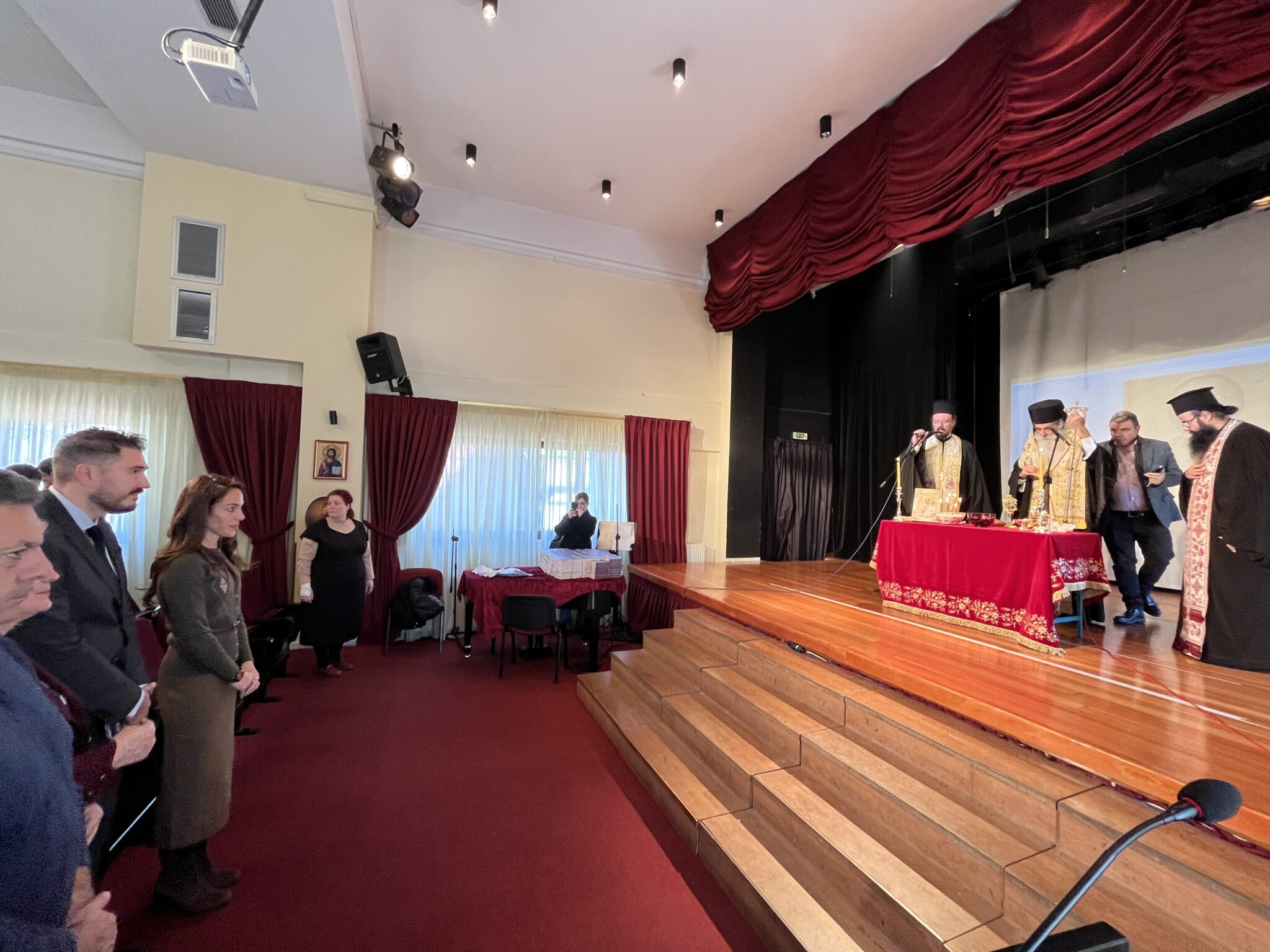 Ο Σεβασμιώτατος Μητροπολίτης Πειραιώς κ. Σεραφείμ τέλεσε το Ιερό Μυστήριο μαζί με τον Γενικό Αρχιερατικό Επίτροπο της τοπικής μας Εκκλησίας Πρωτοπρεσβύτερο Ιωάννη Παναγιώτου και τον Πνευματικό Υπεύθυνο των Εκπαιδευτηρίων μας Πρωτοπρεσβύτερο Νικόλαο Βουρλάκο στη μεγάλη αίθουσα Εκδηλώσεων για τα παιδιά του Γυμνασίου και του Λυκείου, ενώ ο Θεοφιλέστατος Επίσκοπος Αχελώου κ. Νήφων, βοηθός Επίσκοπος και Πρωτοσύγκελλος της Ιεράς Μητροπόλεως Πειραιώς, για τα παιδιά του Βρεφονηπιακού Σταθμού, του Παιδικού Σταθμού, του Νηπιαγωγείου και του Δημοτικού, στο προαύλιο του σχολείου έμπροσθεν του Ιερού Ναού Αγίου Χαραλάμπους.