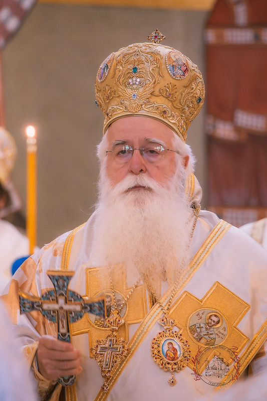 Με την ευκαιρία της σημερινής μας συγκέντρωσης, σας μεταφέρω στον Σεβασμιότατο την ευλογία και τις θερμότερες ευχές της Ιεράς Συνόδου της Εκκλησίας της Ελλάδος και του Προέδρου της, Μακαριωτάτου Αρχιεπισκόπου Αθηνών και πάσης Ελλάδος, κ. Ιερώνυμου, ο οποίος σας στέλνει αδελφικούς χαιρετισμούς. Η εποχή μας είναι δύσκολη, απαιτητική, αλλά και με πολλές ευκαιρίες για πνευματική μαρτυρία και καλεί όλους εμάς, τους ποιμένες, της Ορθόδοξης Εκκλησίας, να αναδειχθούμε ως λειτουργοί, διάκονοι του Ιερού Μυστηρίου της Ευχαριστίας. Να γίνουμε ο ίδιος ο Χριστός εν μέσω του λαού Του, καλώντας όλους σε ενότητα, ταπεινότητα, υπομονή και αγάπη. Ο αγαθός Θεός σας έχει τιμήσει, Σεβασμιότατε, να είστε ο διάδοχος του αγίου προκατόχου σας, και αυτό φαίνεται όχι μόνο στο έργο σας, αλλά και στη θερμή φιλοξενία σας. Η παρουσία σας αποτελεί εγγύηση για το μέλλον της Μητρόπολης και του ευσεβούς λαού που σας έχει εμπιστευτεί.
