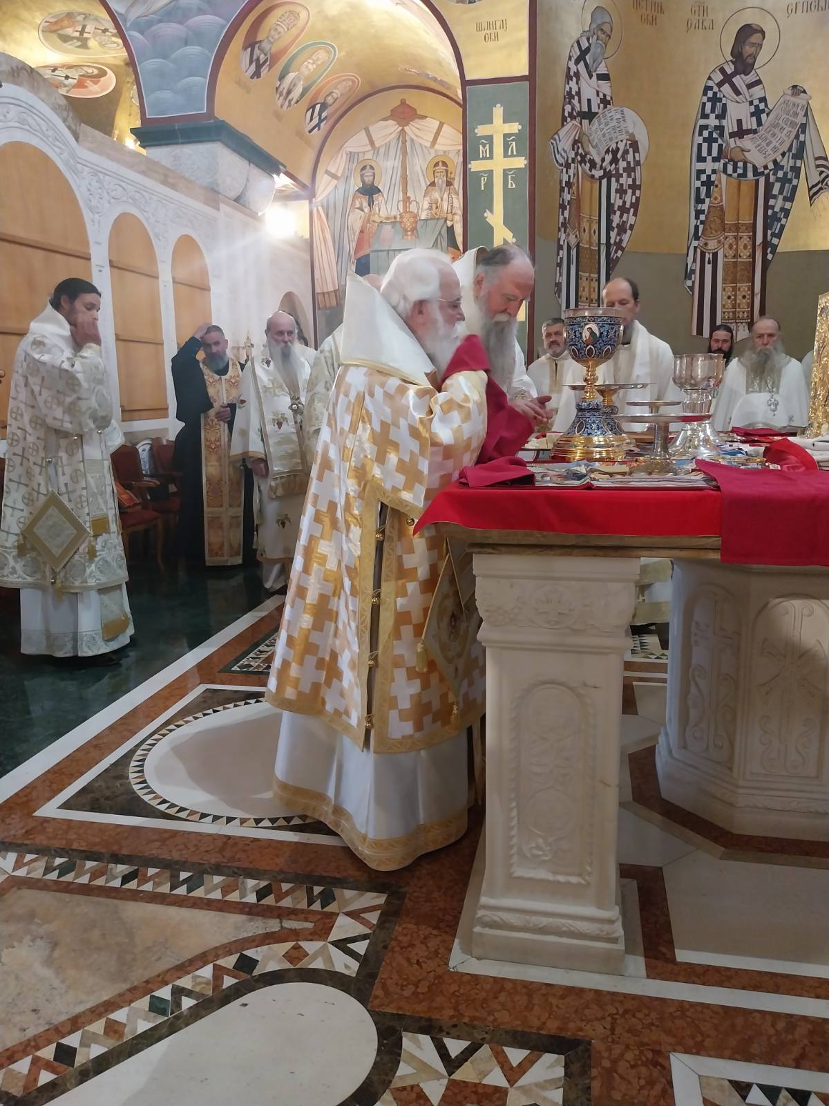 Την Πέμπτη, 30 Οκτωβρίου 2025, επ’ ευκαιρία της πέμπτης επετείου της κοίμησης του μακαριστού Μητροπολίτη Αμφιλοχίου, τελέστηκε η Πολυαρχιερατική Θεία Λειτουργία, προεξάρχοντος του Σεβασμιωτάτου Μητροπολίτου Μαυροβουνίου και Παραθαλασσίας Ιωαννικίου, με τη συλλειτουργία των Σεβασμιωτάτων Μητροπολιτών: Πτολεμαΐδoς και Άκρας Μακαρίου από το Πατριαρχείο Ιεροσολύμων, Δημητριάδος και Αλμυρού κ.Ιγνατίου από την Εκκλησία της Ελλάδος, Μιλέσεβου Αθανασίου, Ράσκας-Πριζρένης Θεοδοσίου, Ζαχουμλίας-Ερζεγοβίνης και Στον-Πριμόρσκο Δημητρίου, Μπουντιμλίας-Νίκσιτς Μεθοδίου και των Σεβασμιωτάτων Επισκόπων Πάκρατς-Σλαβονίας Ιωάννη και Διοκλητίας Παϊσίου, πλήθους κληρικών, μοναχών και πιστού λαού.