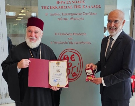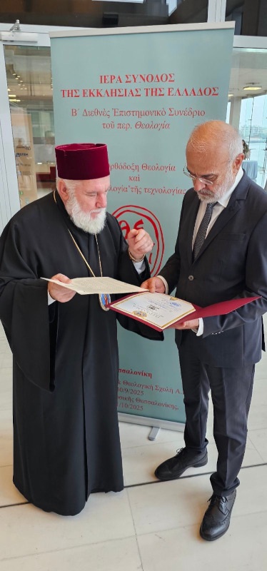 Τις θερμές ευχαριστίες και τα συγχαρητήρια του Πατριάρχη Ρουμανίας κ. Δανιήλ μετέφερε ο εκπρόσωπός του, Επίσκοπος Τουλσέας κ. Βησσαρίων για την πρόσκληση να παραστεί το Πατριαρχείο στο Β’ Διεθνές Επιστημονικό Συνέδριο του Περιοδικού Θεολογία. Ο Επίσκοπος Τουλσέας συνεχάρη στο πρόσωπο του Γραμματέα της Οργανωτικής Επιτροπής του Συνεδρίου κ. Αλέξανδρο Κατσιάρα την Εκκλησία της Ελλάδος για την διεξαγωγή ενός τόσο σημαντικού Συνεδρίου και του προσέφερε ένα επίσημο συλλεκτικό μετάλλιο, έκδοσης του Ρουμανικού Νομισματοκοπείου.