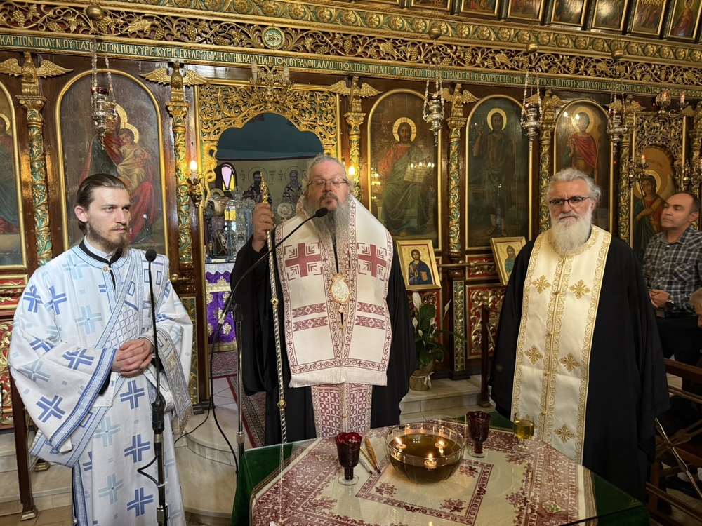 Σε Εκκλησία πλήθουσα, όπου κυριαρχούσε η ευπρέπεια και η τάξη, ο Σεβασμιώτατος πλαισιούμενος από τον Εφημέριο του Ιερού Ναού, Αρχιμ. π. Τιμόθεο Κοντογιάννη και τον Αρχιδιάκονο π. Θεόδωρο, αναφέρθηκε στο Ιερό Μυστήριο του Ευχελαίου και τον λόγο που η Εκκλησία μας όρισε να τελείται την Αγία και Μεγάλη Τετάρτη μια μέρα πριν την Θεία Λειτουργία της Αγίας και Μεγάλης Πέμπτης, ως μορφή πνευματικού καθαρμού και ετοιμασίας για το φρικτό Μυστήριο της Θείας Ευχαριστίας, του οποίου την παράδοση τιμούμε με τη Θεία Λειτουργία της Μεγάλης Πέμπτης. Τόνισε δε πως μόνο με τη συγχωρητικότητα και την αγάπη μπορούμε να πλησιάσουμε το Άγιο Ποτήριο. Ακολούθως ο Σεβασμιώτατος έχρισε μαζί με τους άλλους Κληρικούς τον λαό που με ησυχία ανέμενε και με τάξη προσερχόταν ώστε να χρισθεί «εις ίασιν ψυχής τε και σώματος».