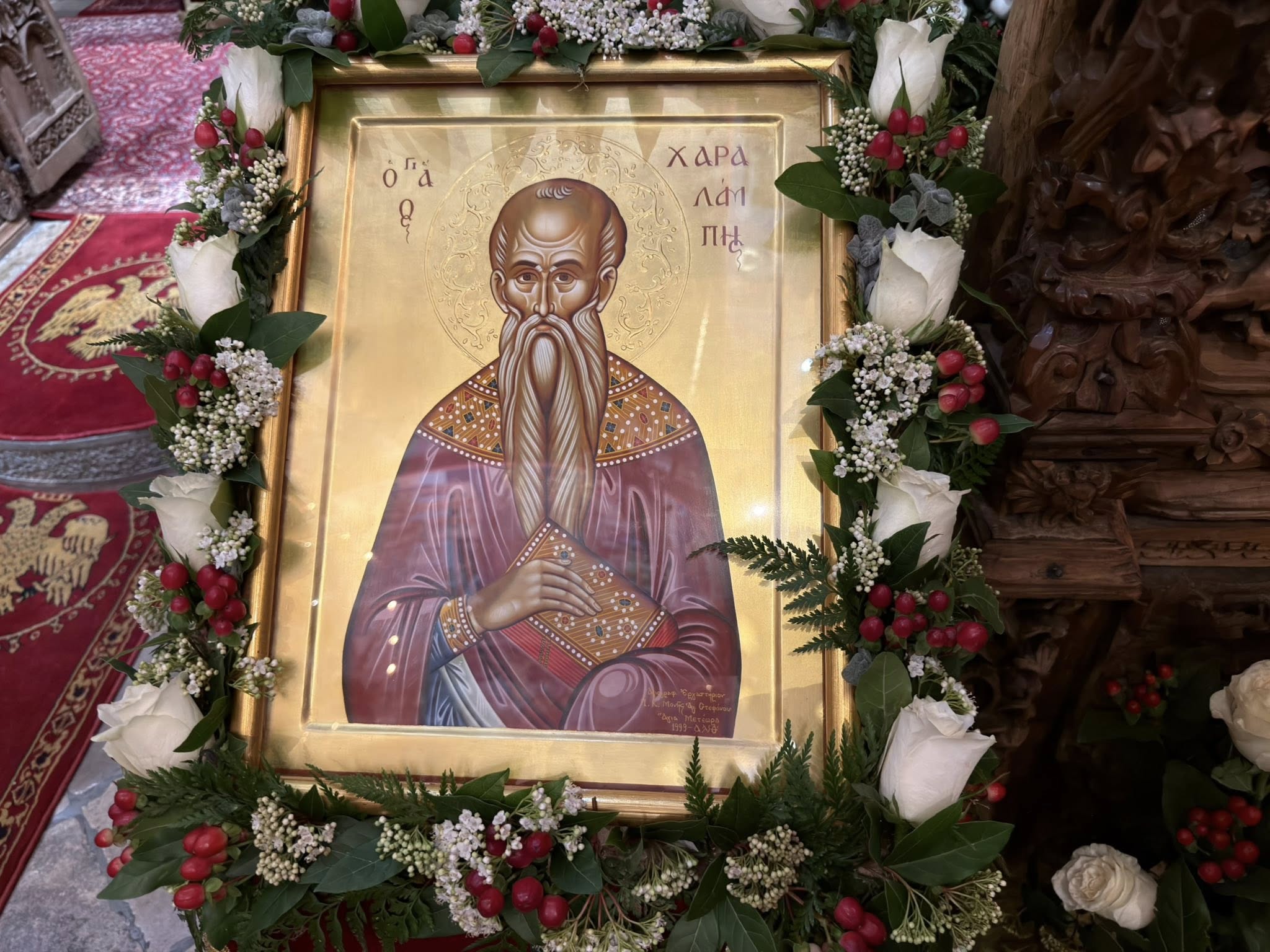 Με ιδιαίτερη θρησκευτική ευλάβεια και κατάνυξη τελέστηκε σήμερα το απόγευμα ο Εσπερινός προς τιμήν του Αγίου Χαραλάμπους στην Ιερά Μονή Αγίου Στεφάνου Μετεώρων.