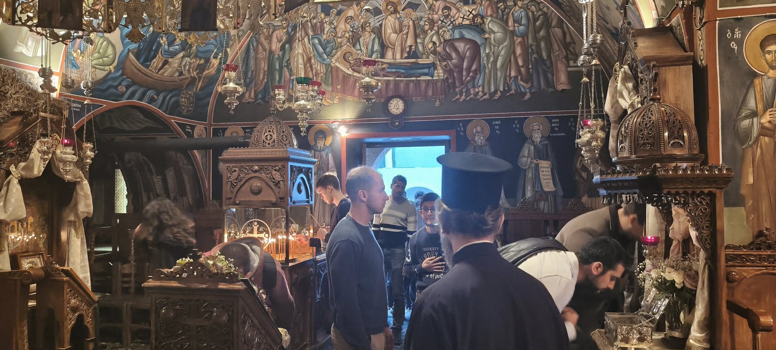 Τήν Κυριακή, 2 Νοεμβρίου 2025, μέ σύμμαχο τόν καλό καιρό, 120 φοιτητές–μέλη τῶν Νεανικῶν Συνάξεων τῶν Ἐνοριῶν τῆς Ἱερᾶς Μητροπόλεως Γλυφάδας πραγματοποίησαν ἑσπερινή προσκυνηματική ἐξόρμηση στήν Ἱερά Μονή Ἁγίου Ἰωάννου Μακρυνοῦ Μεγάρων.