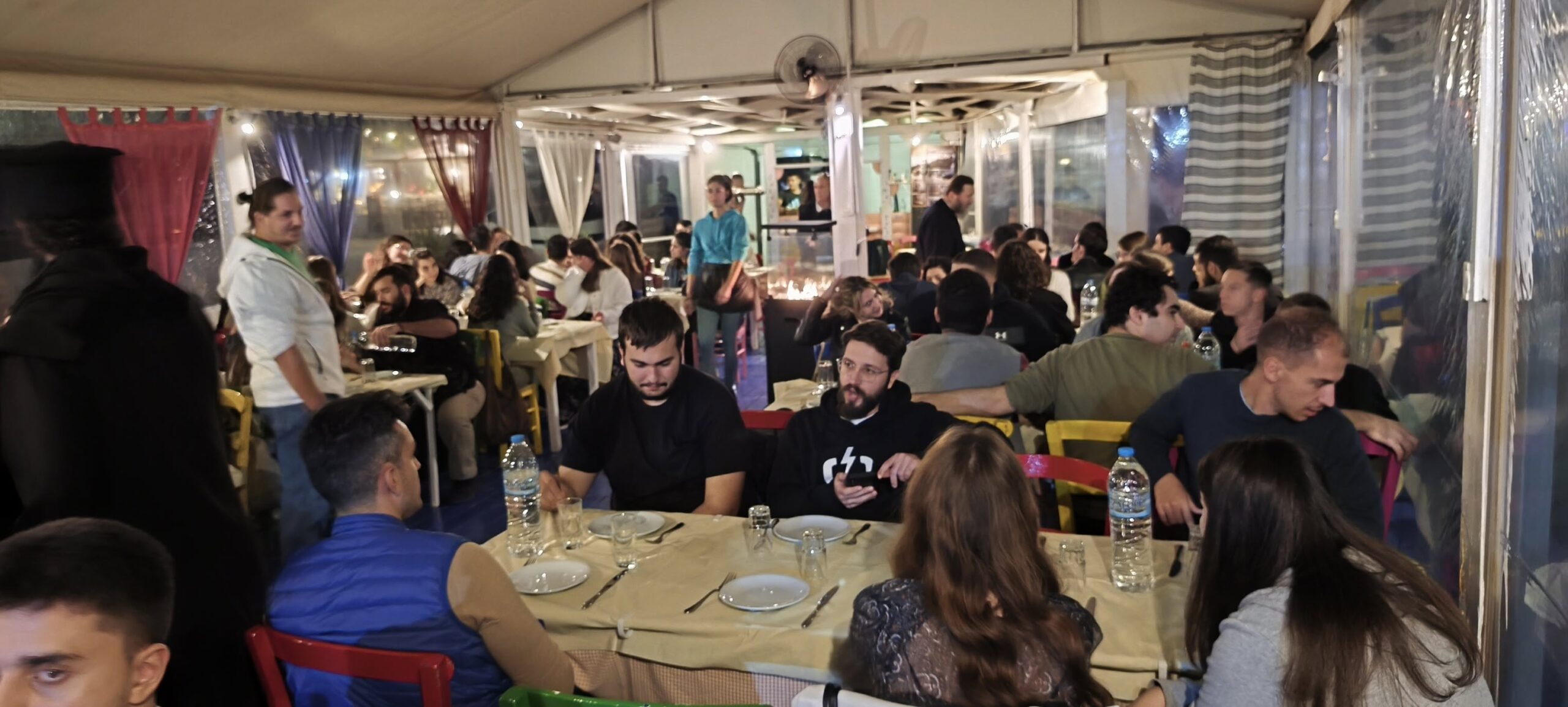 Μετά τό προσκύνημα, οἱ προσκυνητές μετέβησαν σέ ἑστιατόριο τῆς περιοχῆς τοῦ Ἀλεποχωρίου, ὅπου ὁ Σεβασμιώτατος παρέθεσε δεῖπνο στούς νέους.