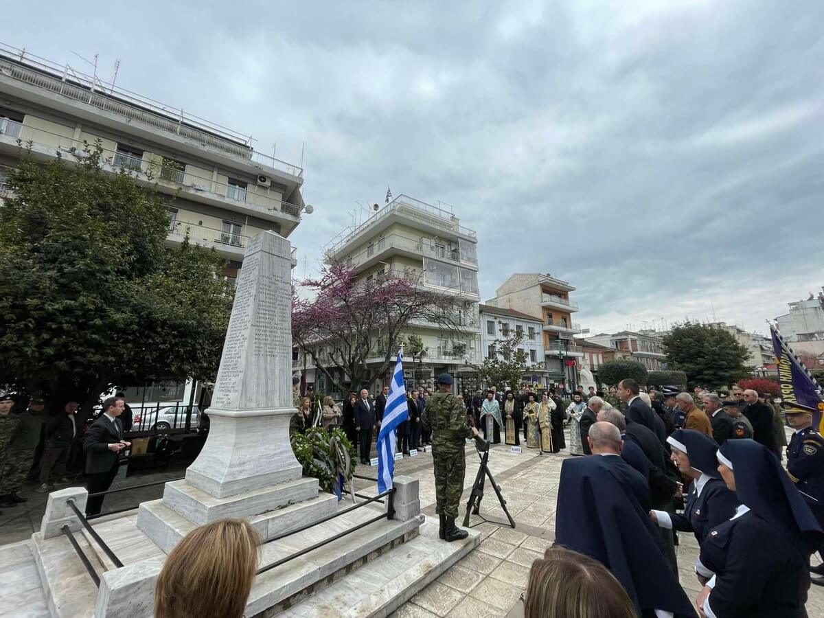 Στη συνέχεια, οι εκδηλώσεις μνήμης και τιμής μεταφέρθηκαν στο Ηρώο Πεσόντων, όπου τελέσθηκε επιμνημόσυνη δέηση. Ακολούθησε η κατάθεση στεφάνων από τους εκπροσώπους των αρχών και των τοπικών φορέων. Οι εκδηλώσεις ολοκληρώθηκαν με την τήρηση ενός λεπτού σιγής και την εκ νέου ανάκρουση του Εθνικού Ύμνου.