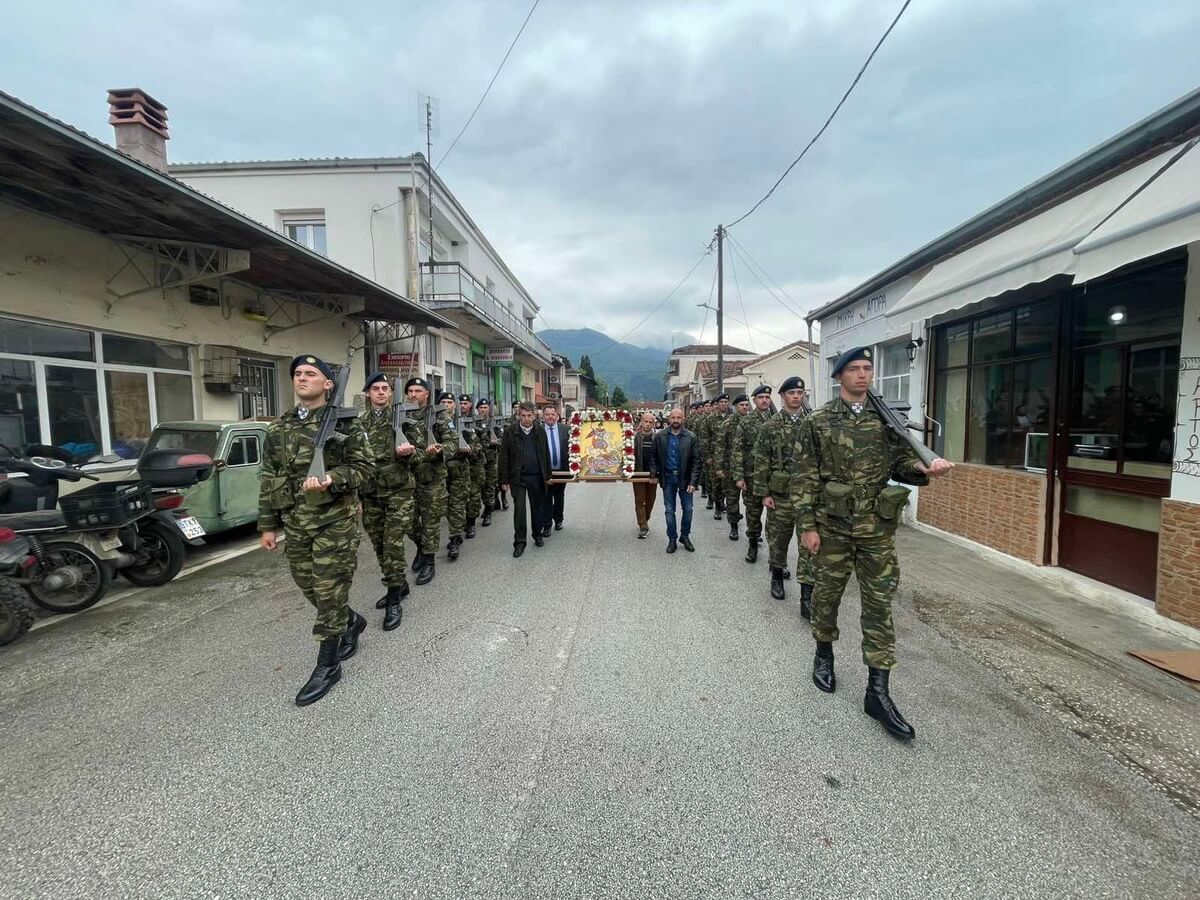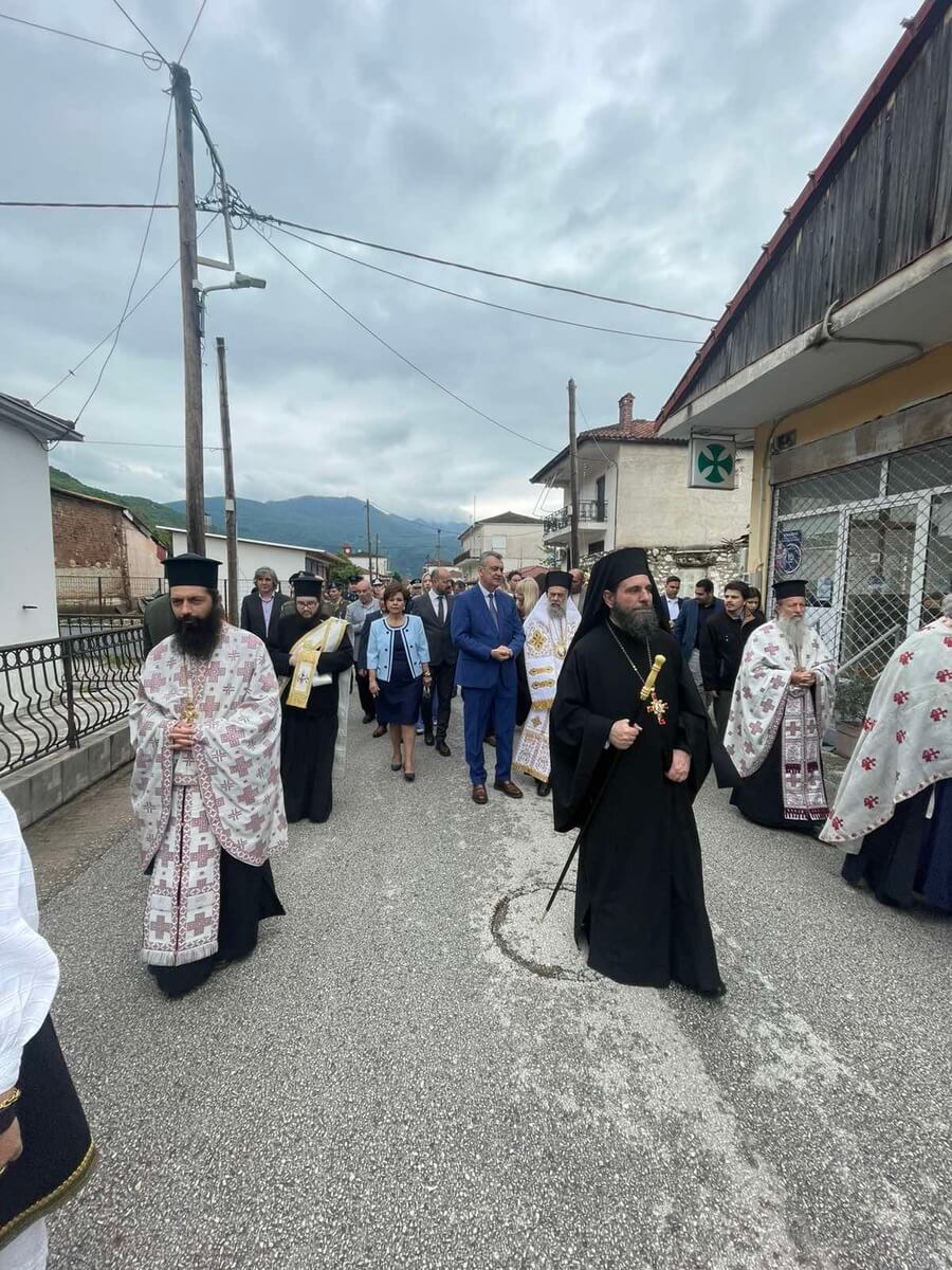 Ακολούθως, προέστη της Λιτανείας της εικόνος του Αγίου Γεωργίου του Τροπαιοφόρου έως την κεντρική πλατεία της Τ.Κ. Μαυρομματίου, όπου τέλεσε επιμνημόσυνη δέηση ενώπιον του έφιππου ανδριάντα του τιμωμένου ήρωος, αποδίδοντας τον οφειλόμενο φόρο τιμής και ευγνωμοσύνης προς την προσφορά του στον αγώνα της εθνικής παλιγγενεσίας.