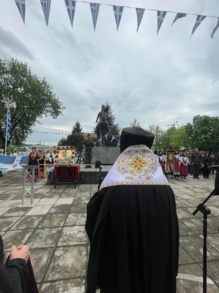 Ο Σεβασμιώτατος Μητροπολίτης μας κ. Τιμόθεος, την Πέμπτη 23 Απριλίου 2026, ημέρα της εορτής του Αγίου Γεωργίου, προέστη με την πρέπουσα εκκλησιαστική τάξη της επισήμου Δοξολογίας και του ιερού μνημοσύνου υπέρ αναπαύσεως της ψυχής του κεκοιμημένου οπλαρχηγού της Ελληνικής Επαναστάσεως, Γεωργίου Καραϊσκάκη, στον Ιερό Ναό Αγίου Νικολάου Τ.Κ. Μαυρομματίου, παρουσία πιστών και τοπικών αρχών.