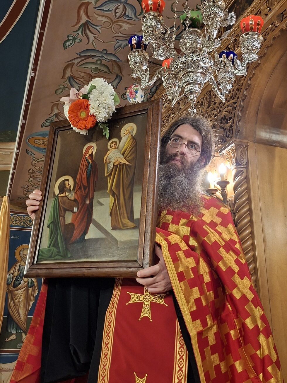 Τέλος προέτρεψε νὰ παρακαλέσουμε τὸν δίκαιο Συμεὼν νὰ μᾶς δώσει λίγη ἀπὸ τὴν χάρη του, λίγη ἀπὸ τὴν εὐλογία ποὺ ἔλαβε καὶ λίγη ἀπὸ τὴν ἰσχύ του, γιὰ νὰ ξανασηκωθοῦμε.