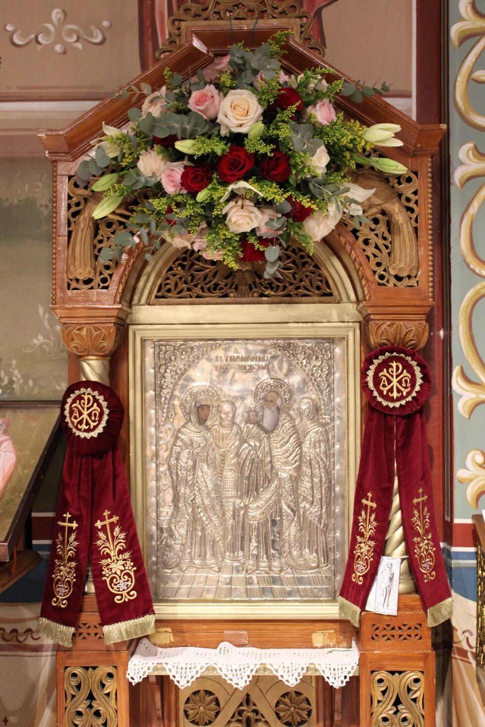 Τὸ ἀπόγευμα στὸν Ναὸ τῆς Ὑπαπαντῆς τελέσθηκε Μέγας Πανηγυρικὸς Ἀρχιερατικὸς Ἑσπερινὸς χοροστατοῦντος τοῦ Θεοφιλεστάτου Ἐπισκόπου Ρωγῶν κ. Φιλοθέου, συμπαραστατουμένου ἀπὸ τοὺς ἐφημερίους τοῦ Ναοῦ καὶ τοῦ Πανοσιολογιωτάτου Ἀρχιμ. π. Ἰακώβου Ψαραδέλλη, ἐφημερίου τοῦ Ἱ. Ν. Κοιμήσεως Θεοτόκου Ἄνω Σουλίου Μαραθῶνος, τῆς Ἱερᾶς Μητροπόλεως Κηφησίας, Ἀμαρουσίου, Ὠρωποῦ καὶ Μαραθῶνος.