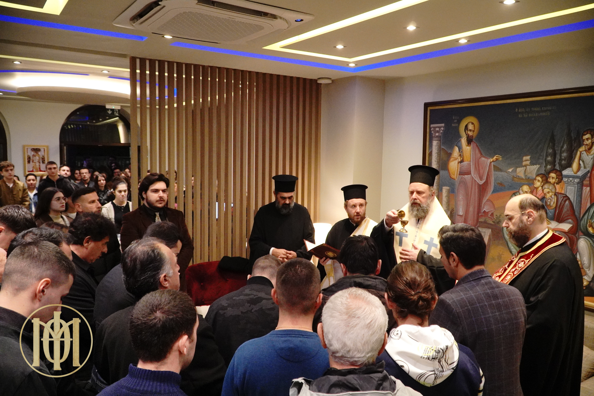 Στην Ακολουθία συμμετείχαν οι ιερείς του Ναού, οι χοροί των ιεροψαλτών και πλήθος νέων παιδιών, που συμμετέχουν στις ποικίλες δραστηριότητες, στα κατηχητικά σχολεία, στα φροντιστήρια και στις υπόλοιπες δράσεις της Καταφυγής.