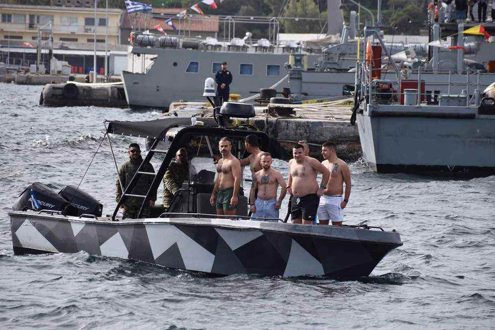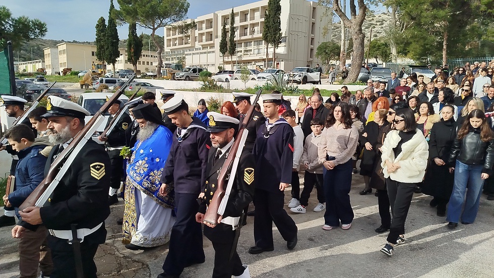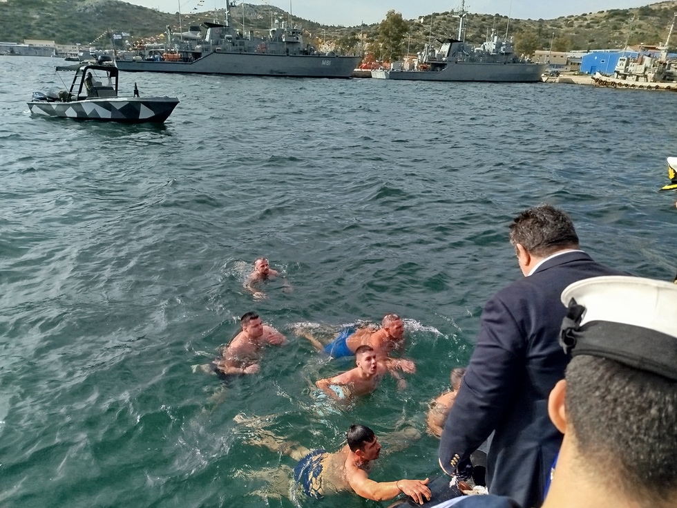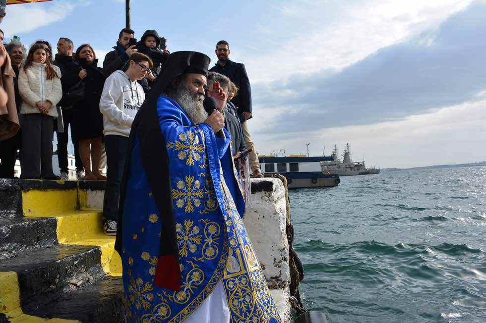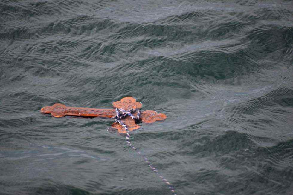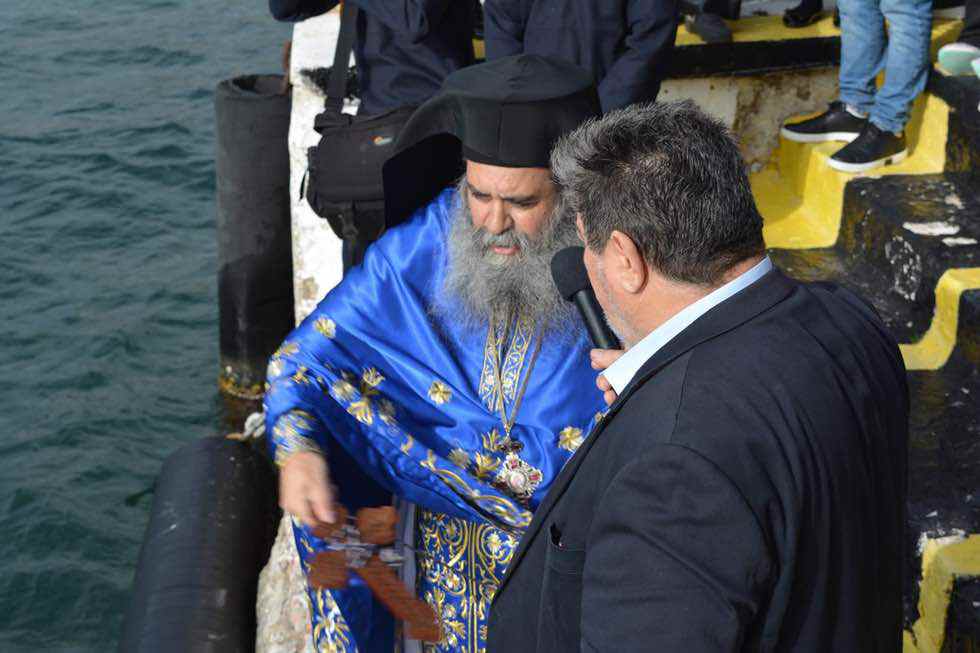 Στην συνέχεια με πομπή κατευθύνθηκαν σε προβλήτα του Ναυστάθμου για την ρίψη του Τιμίου Σταυρού.