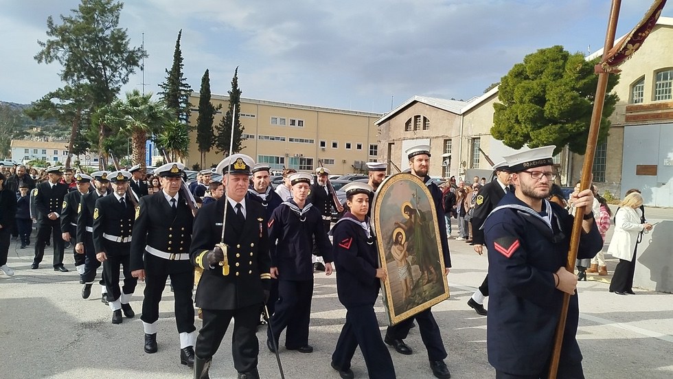 Το πρωί τελέστηκε ο Όρθρος και η Θεία Λειτουργία και εν συνεχεία ο Μέγας Αγιασμός από τον Στρατιωτικό Ιερέα του ΓΕΝ Αρχμ.Αλέξιο Ιστρατόγλου Σχη(ΣΙ).