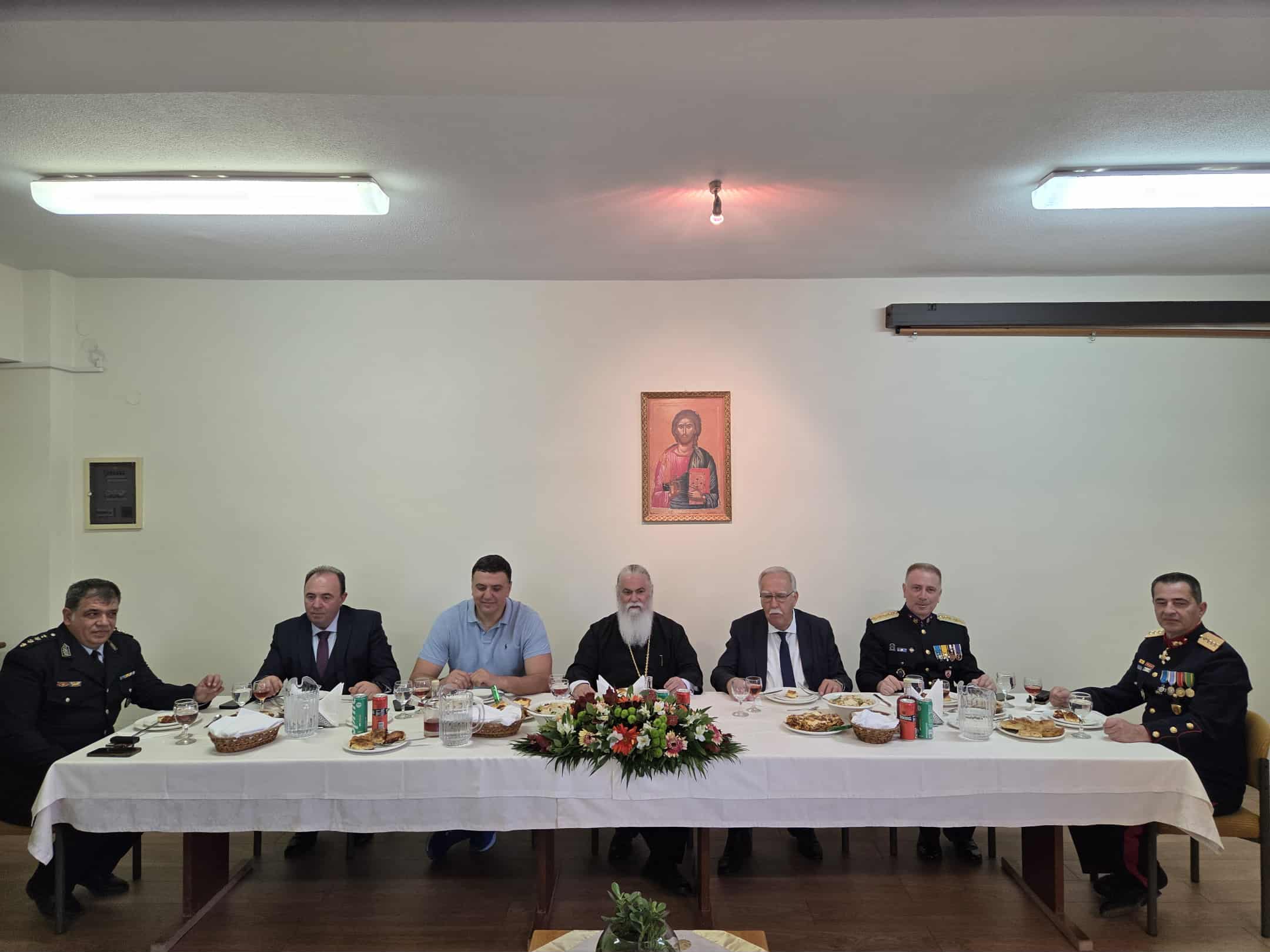 Κατόπιν, παρετέθη επίσημο γεύμα στο Καλλιμανοπούλειο Εκκλησιαστικό Διακονικό Κέντρο Καλαβρύτων προς τιμήν του Υπουργού, όπου ο Σεβασμιώτατος υποδέχθηκε επίσης τους Εκπροσώπους των Αρχών και όλους τους παρισταμένους επισήμους.