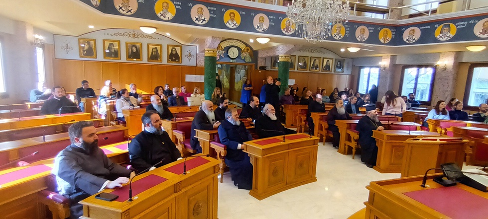 Ο Θεοφιλέστατος Αρχιγραμματεύς κ. Ιωάννης καλωσόρισε όλους τους επισκέπτες στην Ιερά Σύνοδο και τους μετέφερε τις εόρτιες ευχές του Μακαριωτάτου Αρχιεπισκόπου Αθηνών και πάσης Ελλάδος κ. Ιερωνύμου.