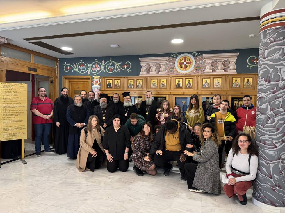 Εν όψει των εορτών της Θείας Επιφανείας, την Τετάρτη 17 Δεκεμβρίου 2025 έψαλαν τα κάλαντα παρόντος του Αρχιγραμματέως της Ιεράς Συνόδου, Θεοφιλεστάτου Επισκόπου Σκιάθου κ. Ιωάννου, του Θεοφιλεστάτου Επισκόπου Επιδαύρου κ. Νικοδήμου, Γενικού Διευθυντού της ΕΚΥΟ, καθώς και Κληρικών και λαϊκών Συνοδικών Υπαλλήλων, ωφελούμενοι του Κέντρου Διημέρευσης και Ημερήσιας Φροντίδας Ατόμων με Αναπηρία «Νικόδημος Γραικός» του Ιδρύματος Περιθάλψεως Ατόμων με Νοητική Υστέρηση ή Σύνδρομο DOWN «Μαρία Κόκκορη», συνοδευόμενοι από την Διευθύντρια του Κέντρου κ. Μάρα Αναστασοπούλου και συναδέλφους εκπαιδευτικούς.