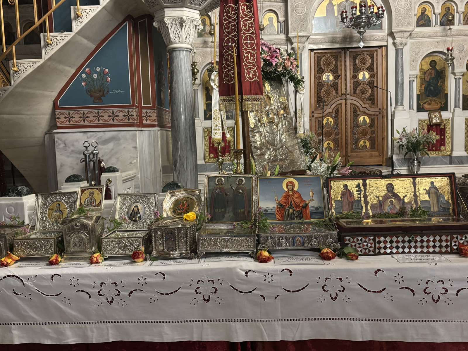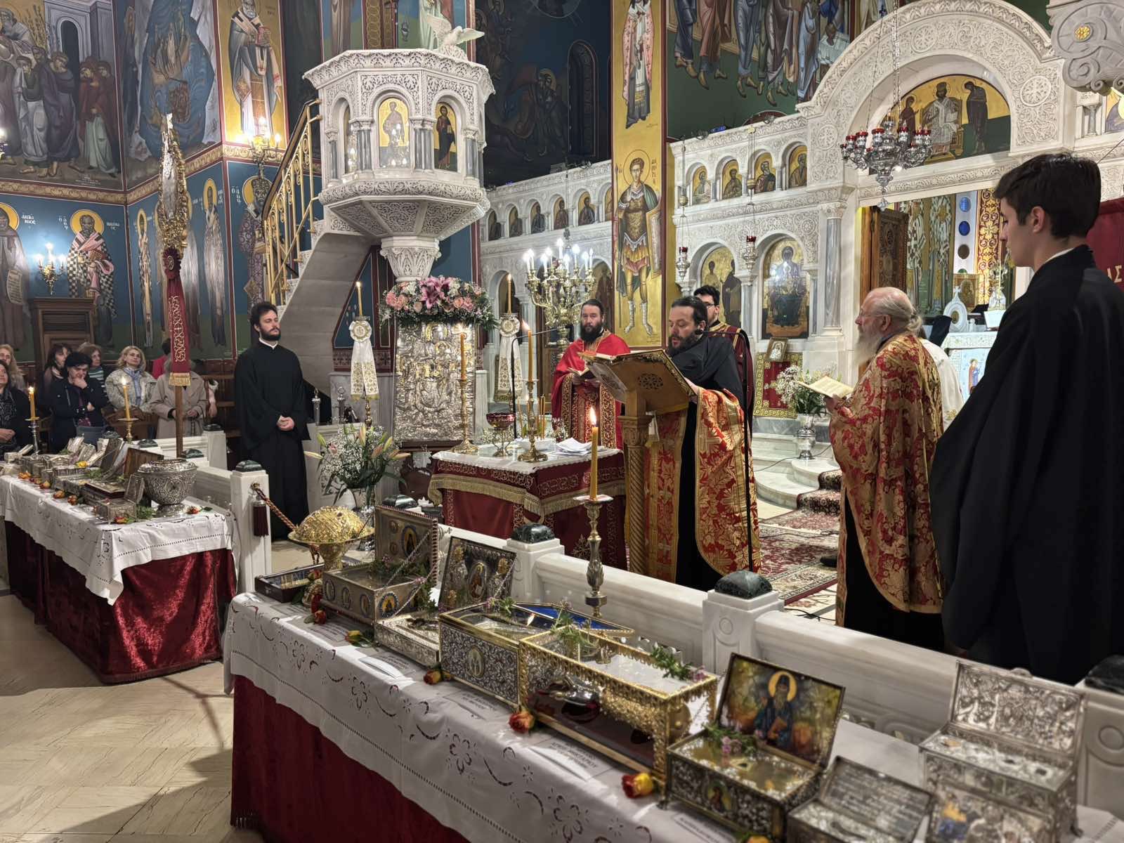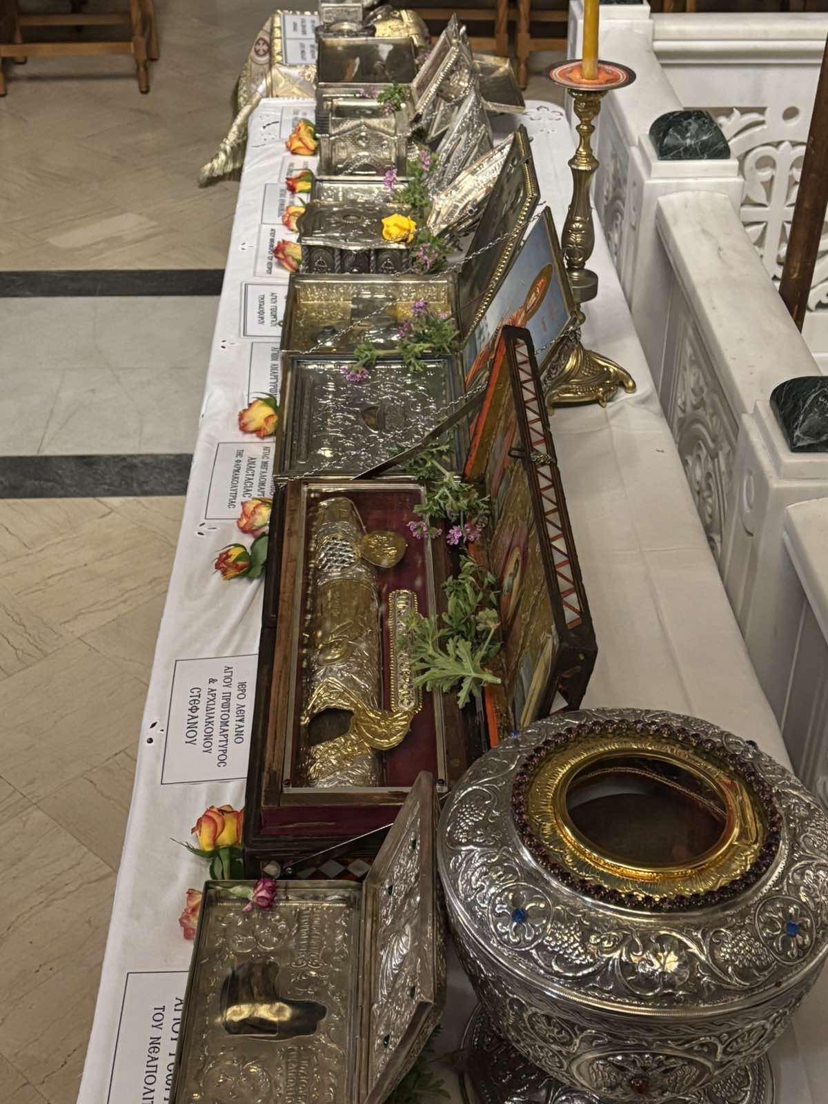 Τα ιερά λείψανα θα εκτίθενται σε προσκύνηση έως την επόμενη Κυριακή το απόγευμα. Καθημερινά θα τελείται: