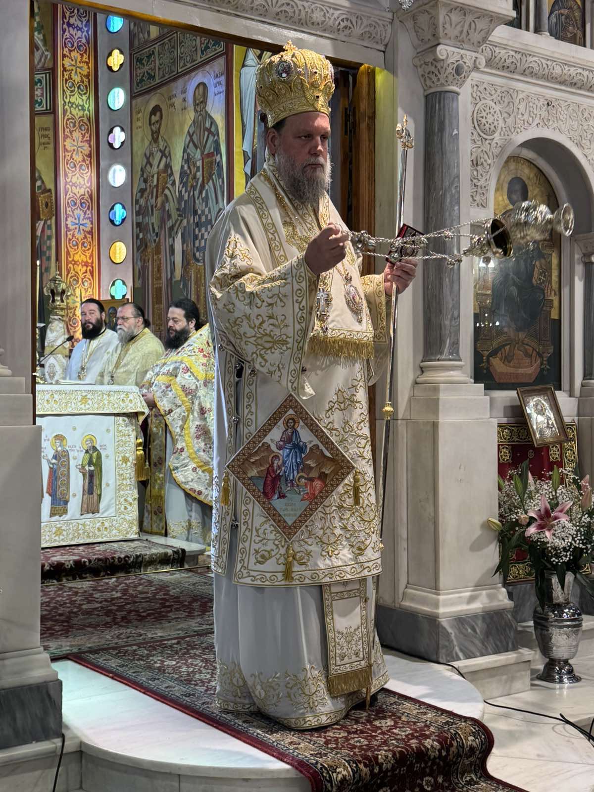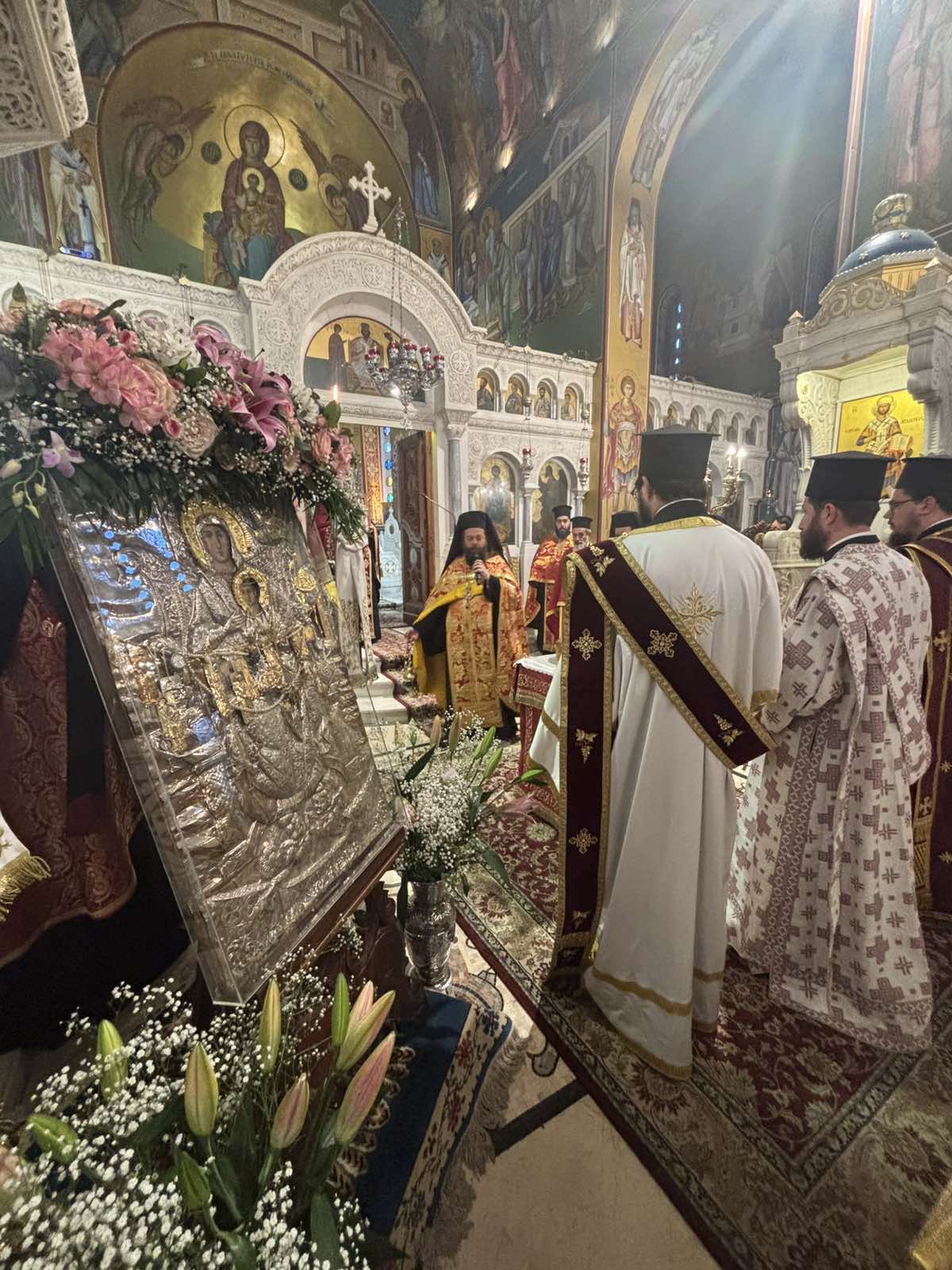 Με λαμπρότητα και εκκλησιαστική τάξη τελέστηκε το Σάββατο 25 Απριλίου ο Πανηγυρικός Εσπερινός και το ιερό Ευχέλαιο και την Κυριακή 26 Απριλίου η Πανηγυρική Θεία Λειτουργία επί τη εορτή της Συνάξεως της Ιεράς Εικόνος της Παναγίας Διασωζούσης και των Αγίων της Μικράς Ασίας στον Ιερό Μητροπολιτικό Ναό Αγίων Αναργύρων Νέας Ιωνίας, παρουσία του Δημάρχου κ. Π. Μανούρη, δημοτικών συμβούλων και προέδρων Μικρασιατικών σωματείων.