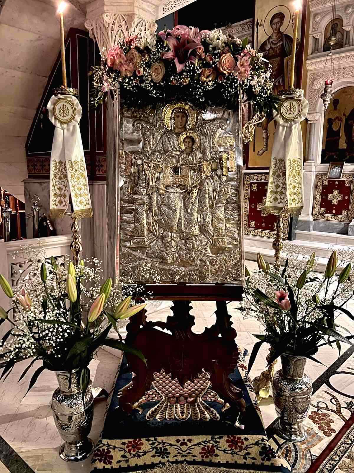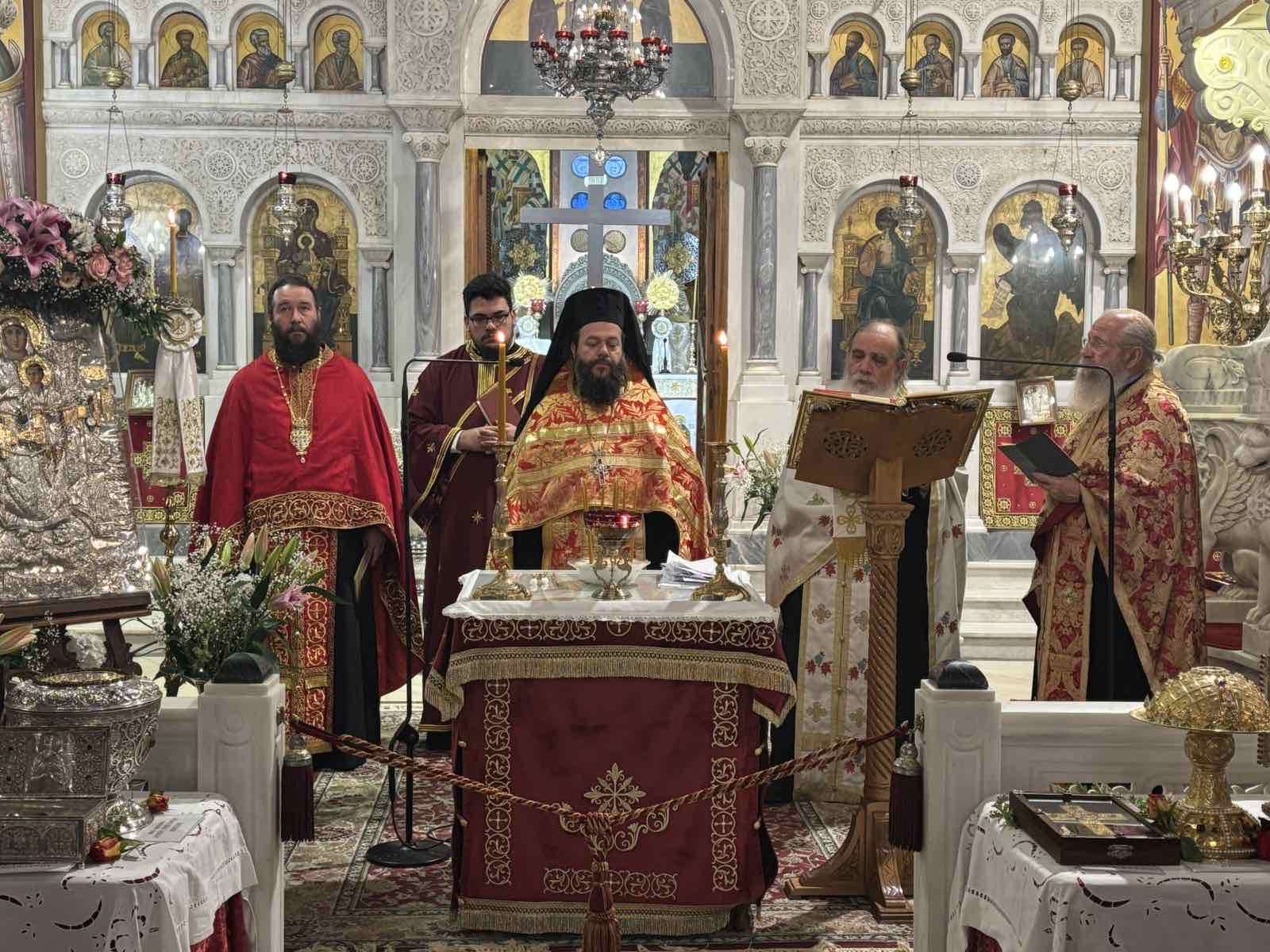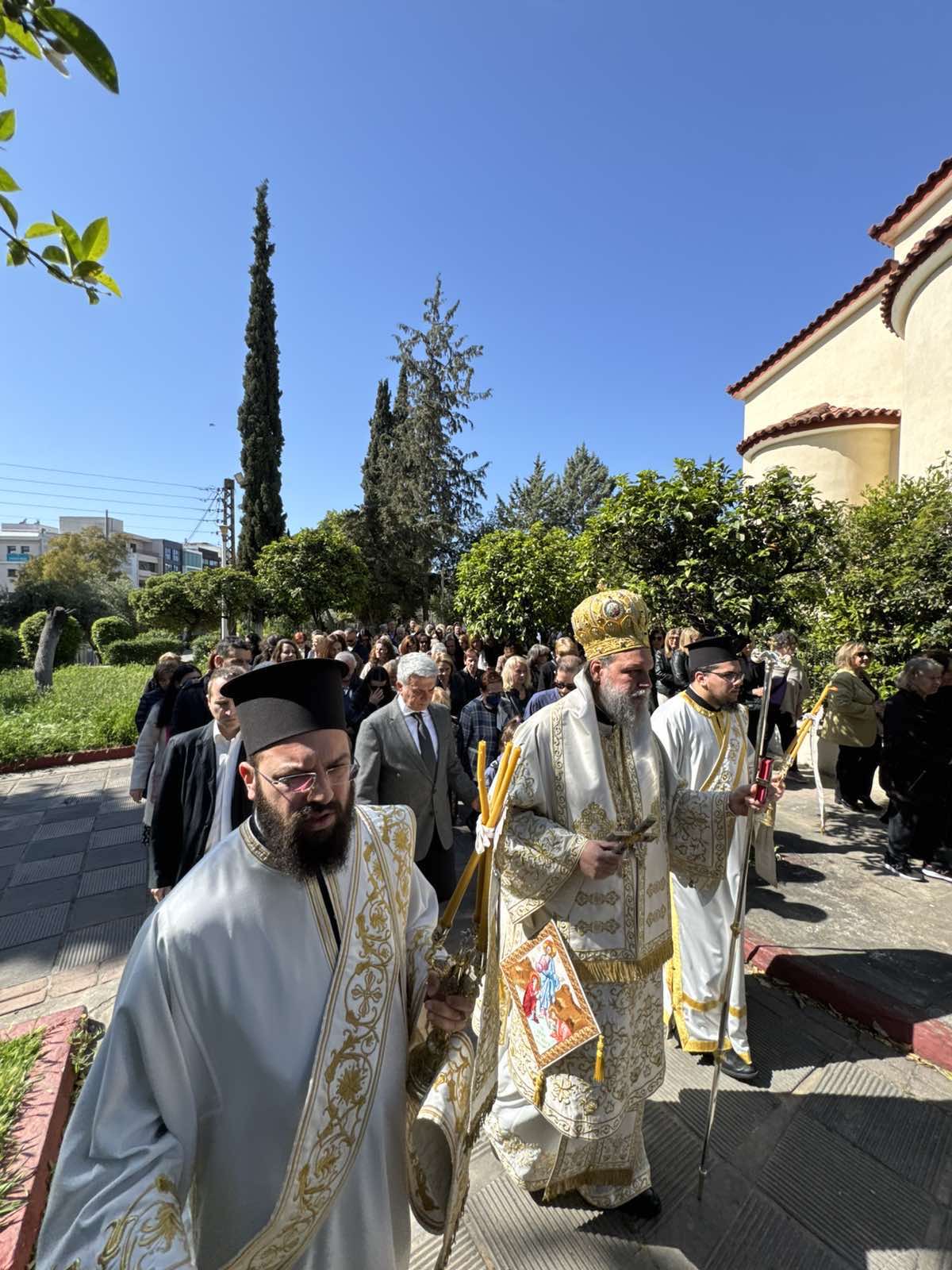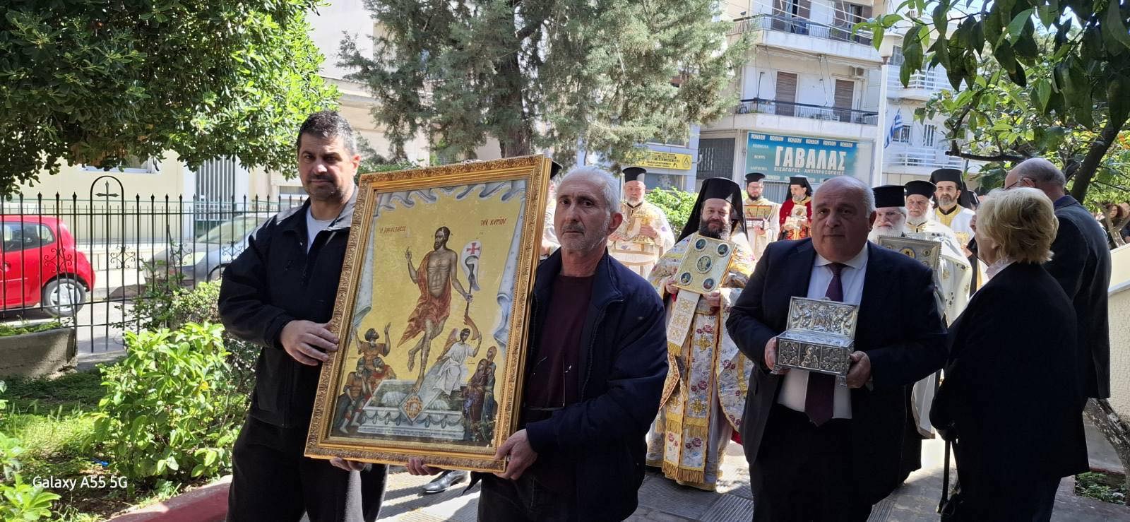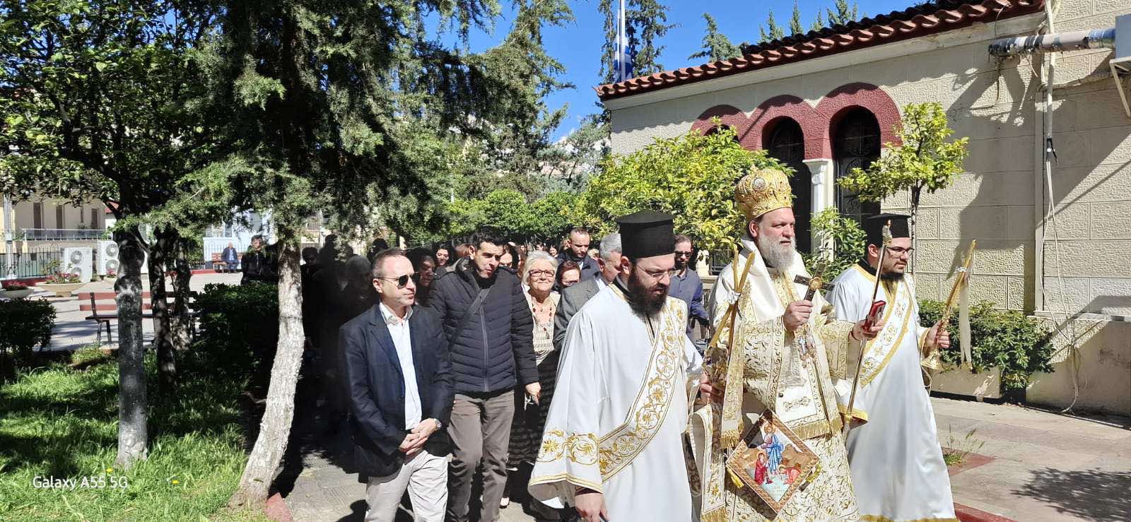 Ακολούθησε Ιερά Λιτάνευση της θαυματουργού εικόνος της Παναγίας Διασωζούσης και των Ιερών Λειψάνων, με τη συμμετοχή πλήθους πιστών.