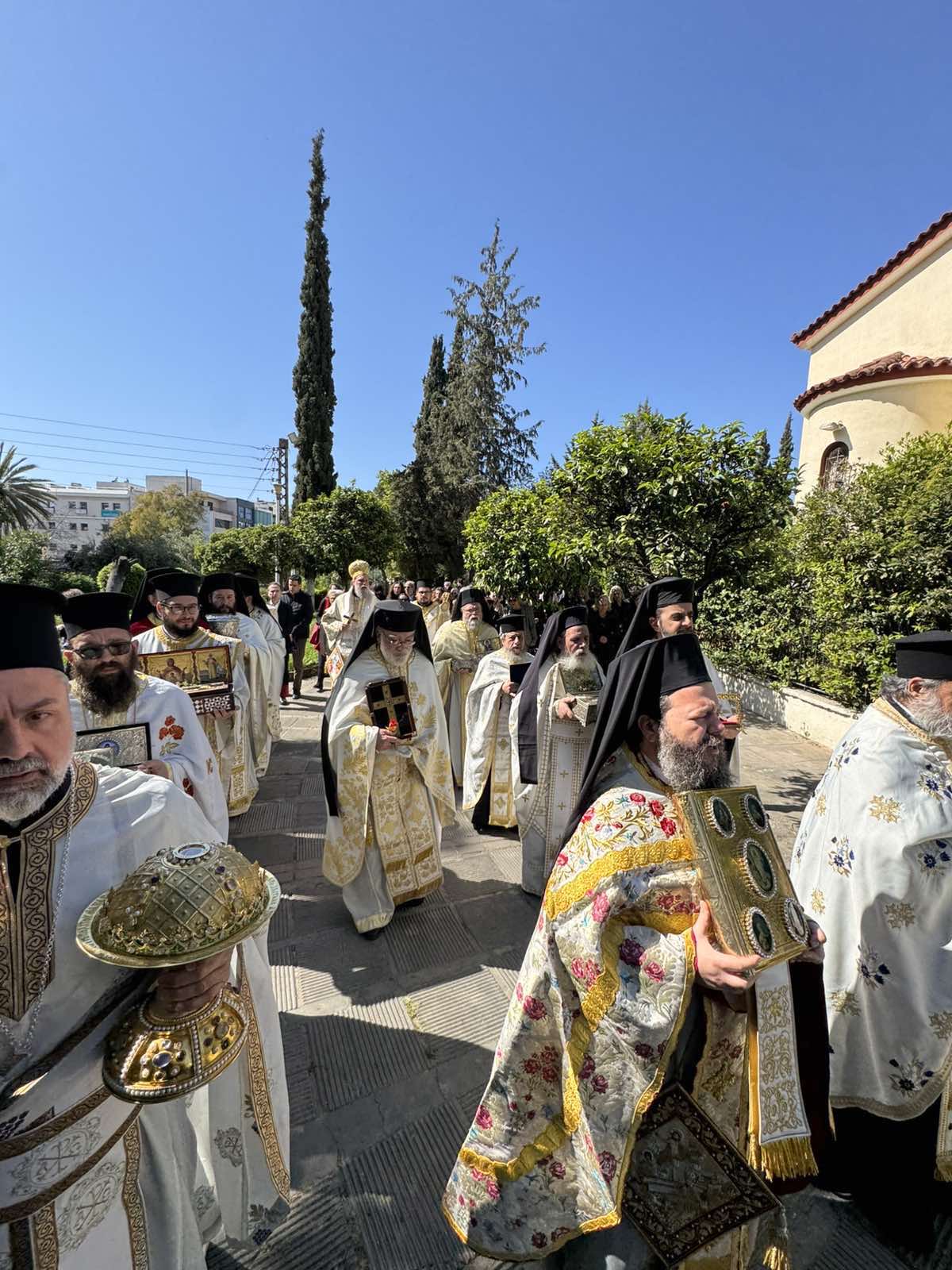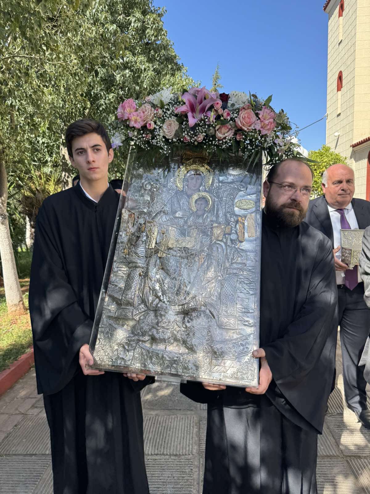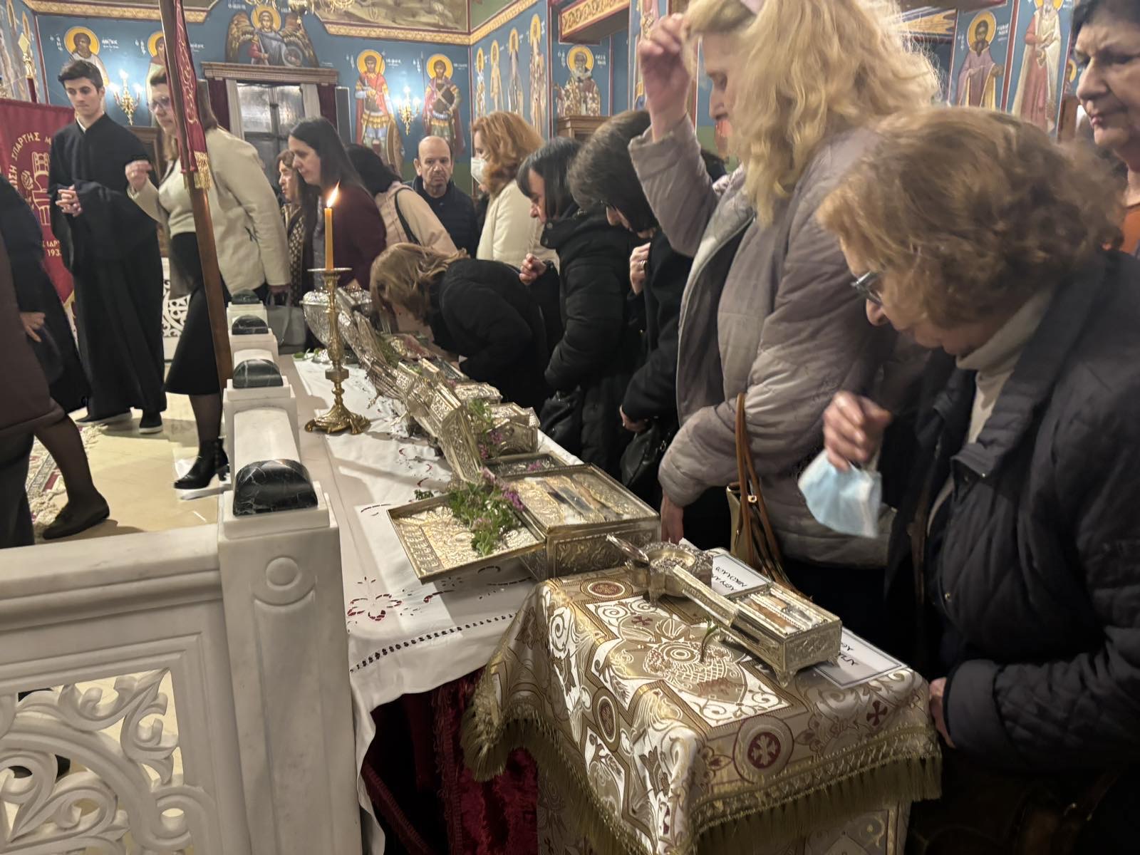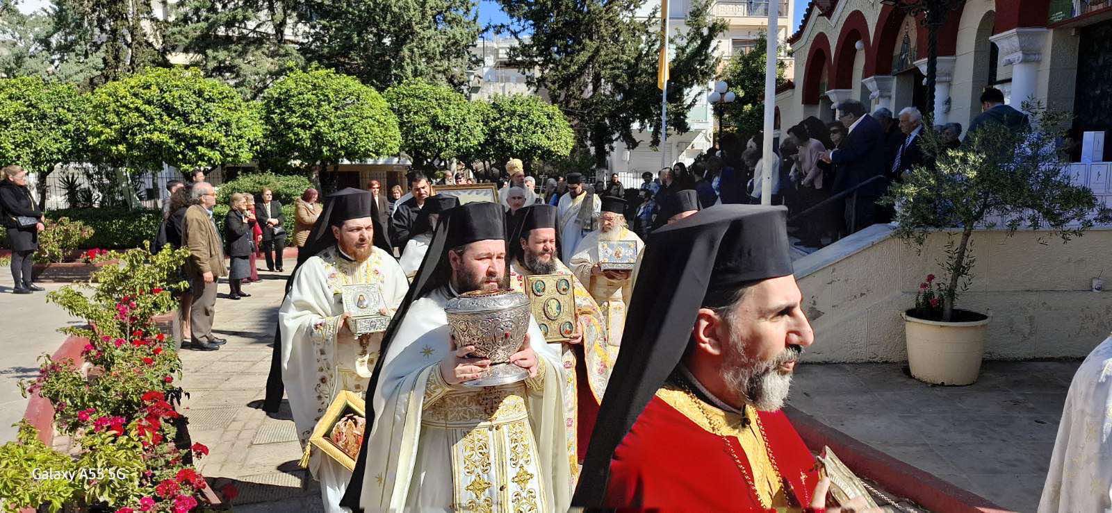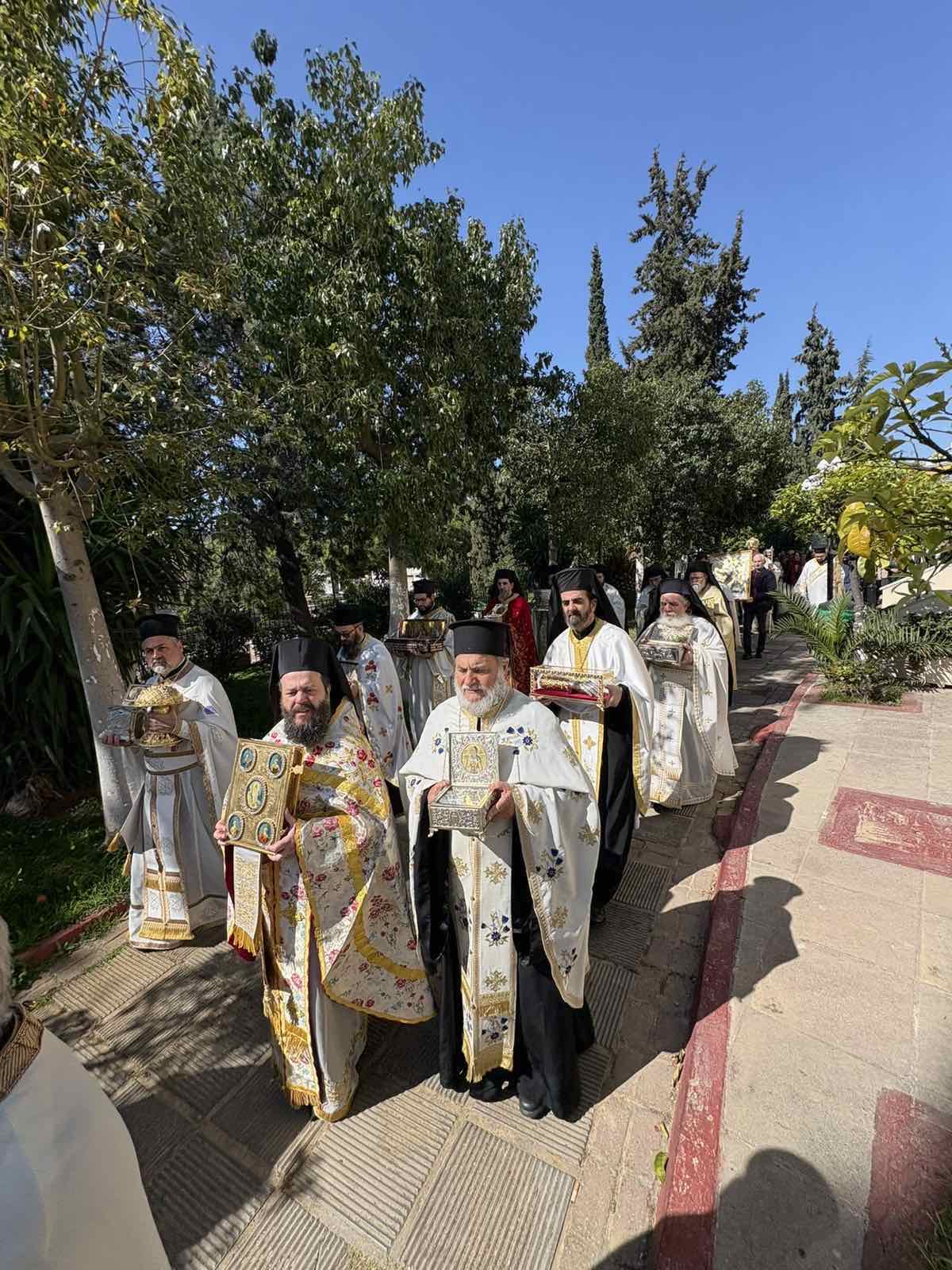 Ακολούθησε Ιερά Λιτάνευση της θαυματουργού εικόνος της Παναγίας Διασωζούσης και των Ιερών Λειψάνων, με τη συμμετοχή πλήθους πιστών.