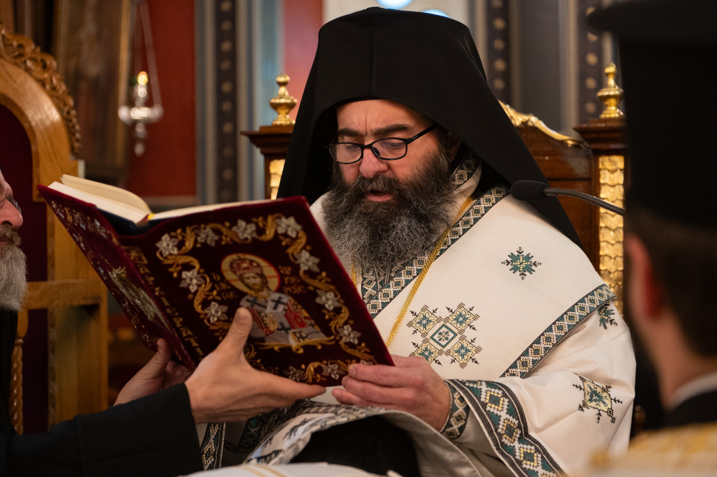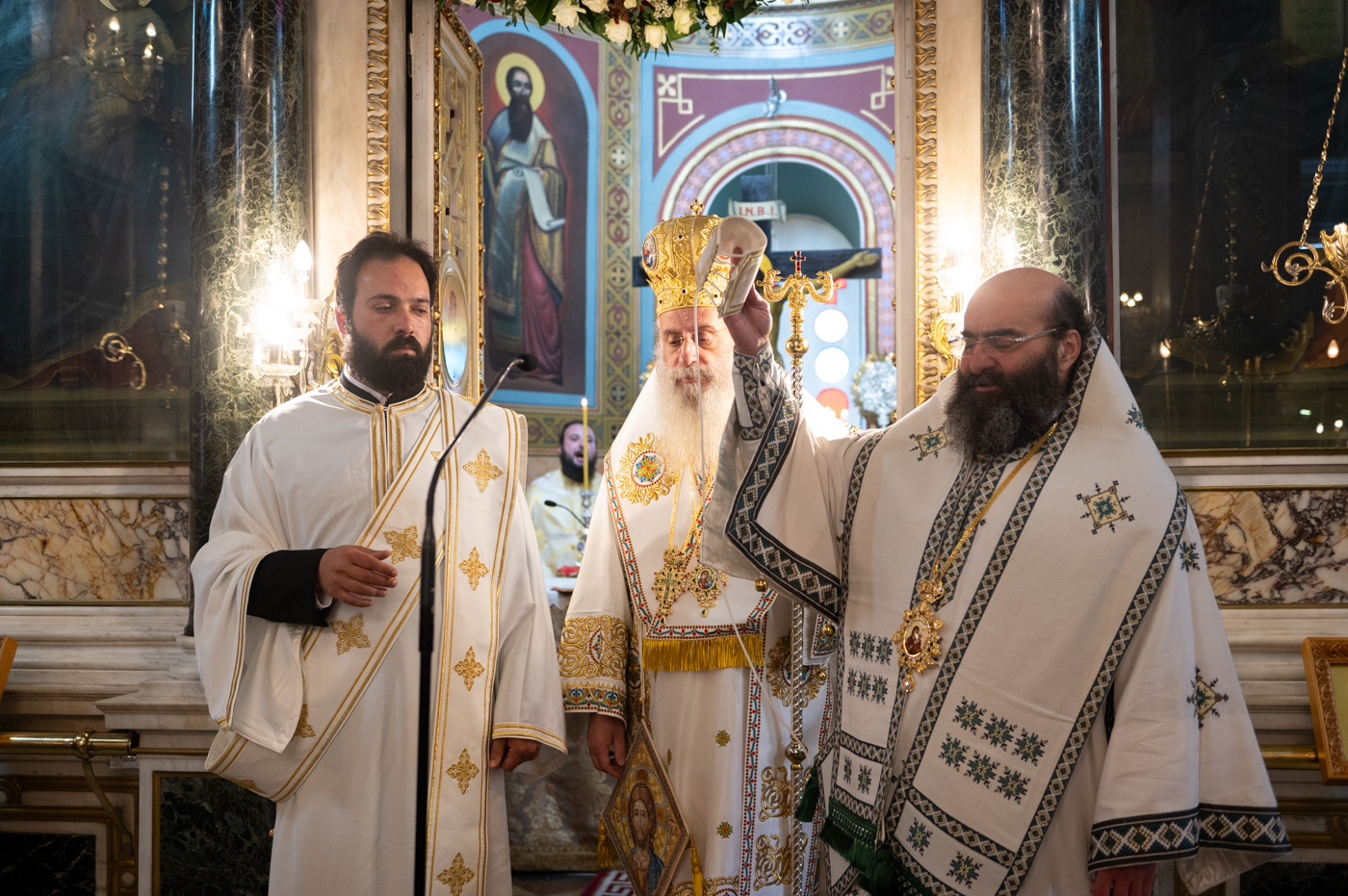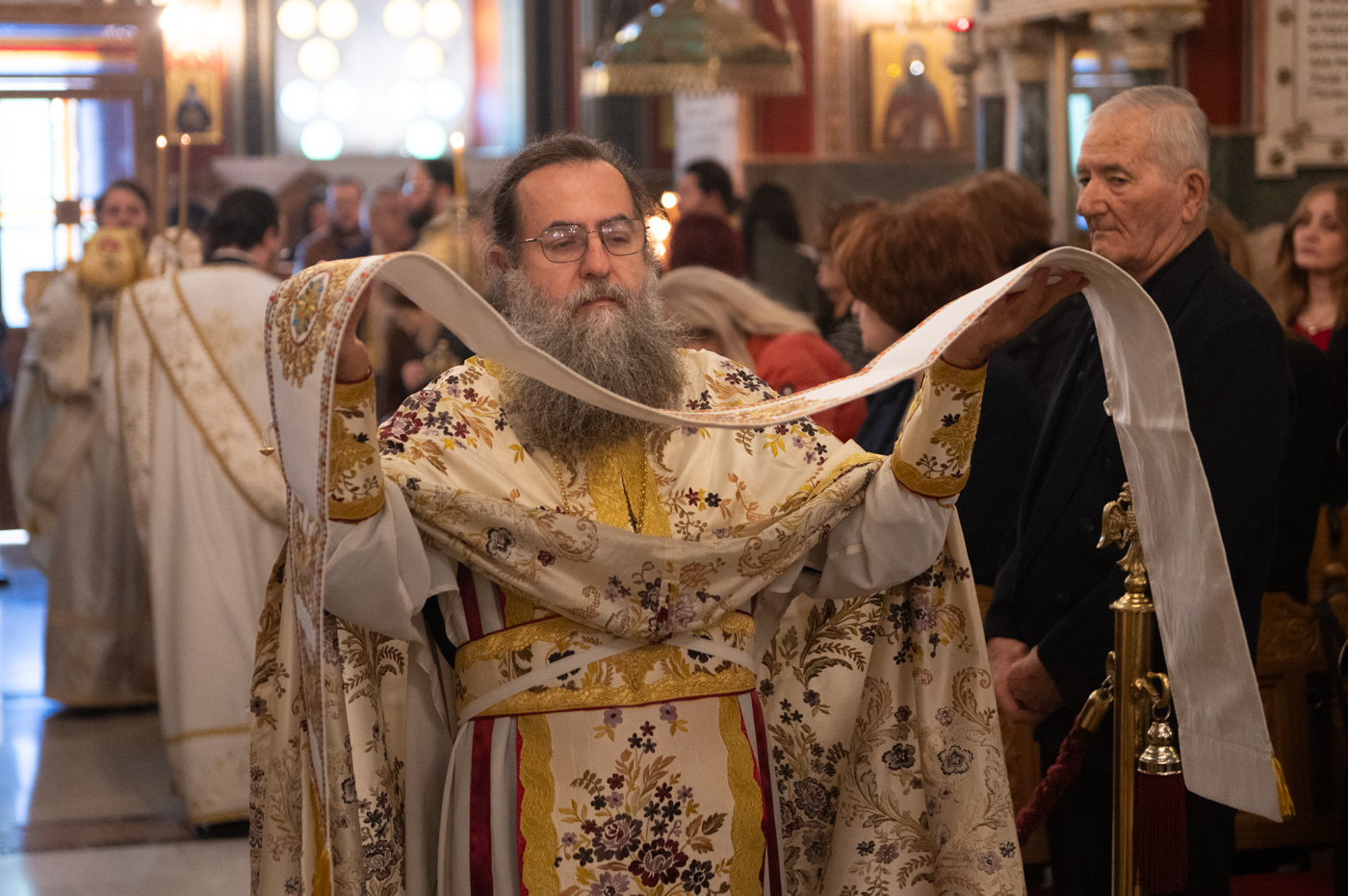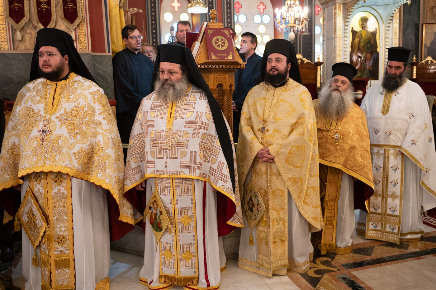 Επίσης, αναφέρθηκε στην σημερινή Επέτειο από της ενθρονίσεως του Μητροπολίτη κ. Επιφανίου και σημείωσε την έως σήμερα πορεία του από την ημέρα εκείνη λέγοντας, ότι η ενθρόνιση ενός Επισκόπου είναι γεγονός υψηλής θεολογικής σημασίας, διότι δεν πρόκειται για διοικητικό διορισμό, αλλά για αποστολή που φέρει το βάρος του Σταυρού και τη χάρη της Αναστάσεως, κατά τον Άγιο Ιγνάτιο τον Θεοφόρο. Συνάμα, τόνισε ότι ο Μητροπολίτης αποτελεί λιμάνι ελπίδας και παρηγοριάς, αλλά και σταθερή πυξίδα για την τοπική κοινωνία. “Προσήλθατε ως Επίσκοπος σε αυτή την Μητρόπολη, όχι για να υπηρετηθείτε, αλλά για να διακονήσετε με αυταπάρνηση, ταπείνωση και πατρική αγάπη”. Κλείνοντας τον λόγο του, ευχήθηκε τα έτη του να είναι πολλά, ειρηνικά, καρποφόρα, ο Κύριος να τον στερεώνει και οι Άγιοι της τοπικής Εκκλησίας να είναι συνοδοιπόροι του.