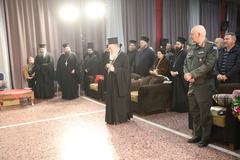 Στο τέλος της εκδήλωσης, ο Σεβασμιώτατος κ. Χρυσόστομος ευχαρίστησε τη Σχολή Πεζικού για τη φιλοξενία της Εκδήλωσης, συνεχάρη τον π. Χριστόδουλο, για την εμπνευσμένη ομιλία του, στην οποία στάθηκε διά πολλών αναφορών, αναφέρθηκε επαινετικά στην εργασία και στην προσφορά του κ. Δημητρίου Λιανοστάθη, για τη διάσωση και διάδοση της τοπικής παράδοσης και του πολιτισμού γενικότερα. Επαίνεσε μετ’ ευχαριστιών τον Μαέστρο κ. Παύλο Κουρμπέτη και τα αδέλφια του μουσικούς Κωνσταντίνο, Βασιλική και Αλεξάνδρα, την υπεύθυνη του Παιδικού Τμήματος και του Τμήματος εκμάθησης Παραδοσιακών Χορών κ. Άννα Ροδά, τη Γενική Υπεύθυνη της Χορωδίας – Ορχήστρας κ. Μαγδαληνή Αργυράκη, Καθηγήτρια – Θεολόγο και όλα τα παιδιά που συμμετέχουν σ’ αυτήν, αλλά και τους καλούς γονείς τους, οι οποίοι εμπιστεύονται τα παιδιά τους στην Εκκλησία και απολαμβάνουν τους καρπούς της καλλιέργειάς τους.