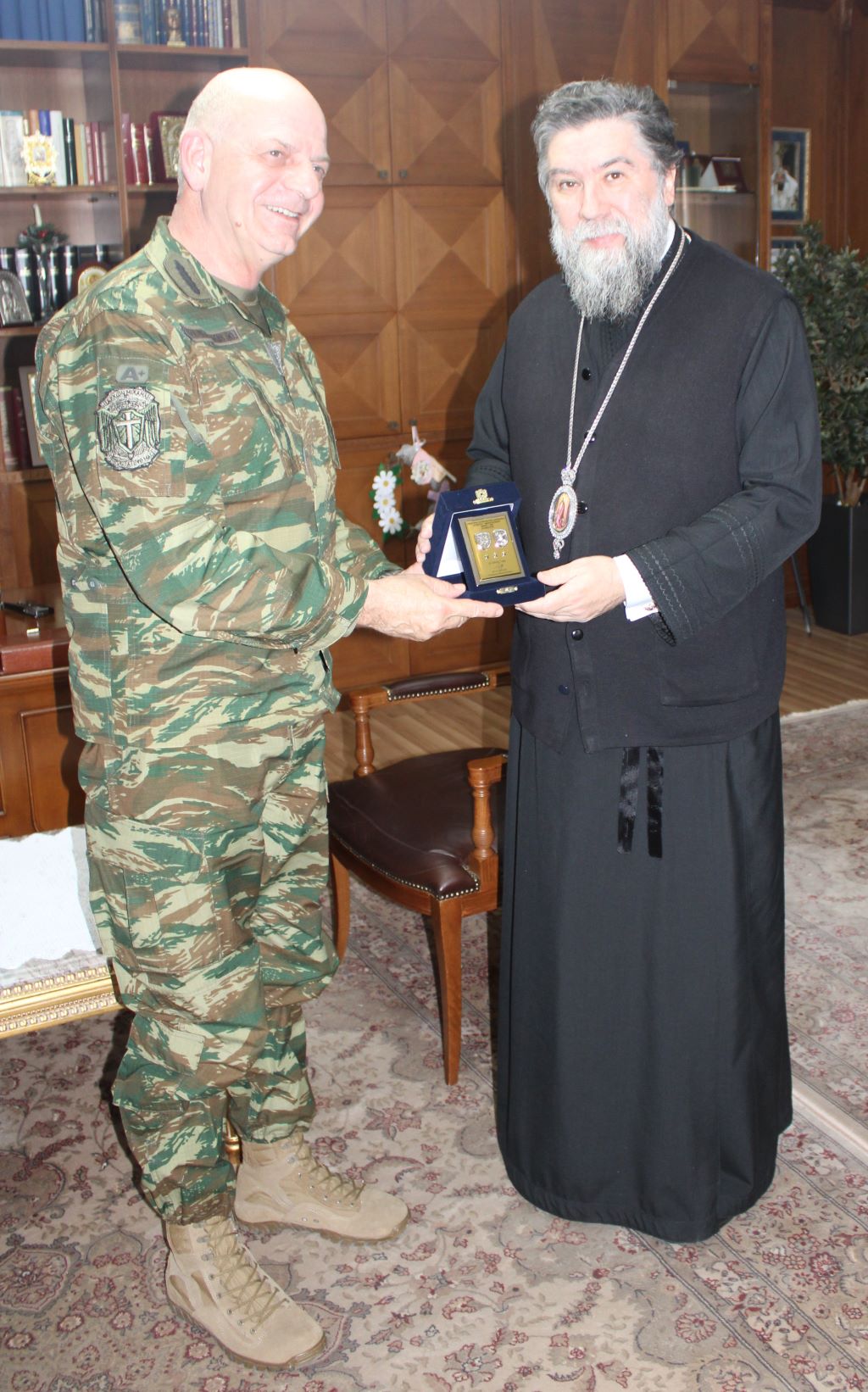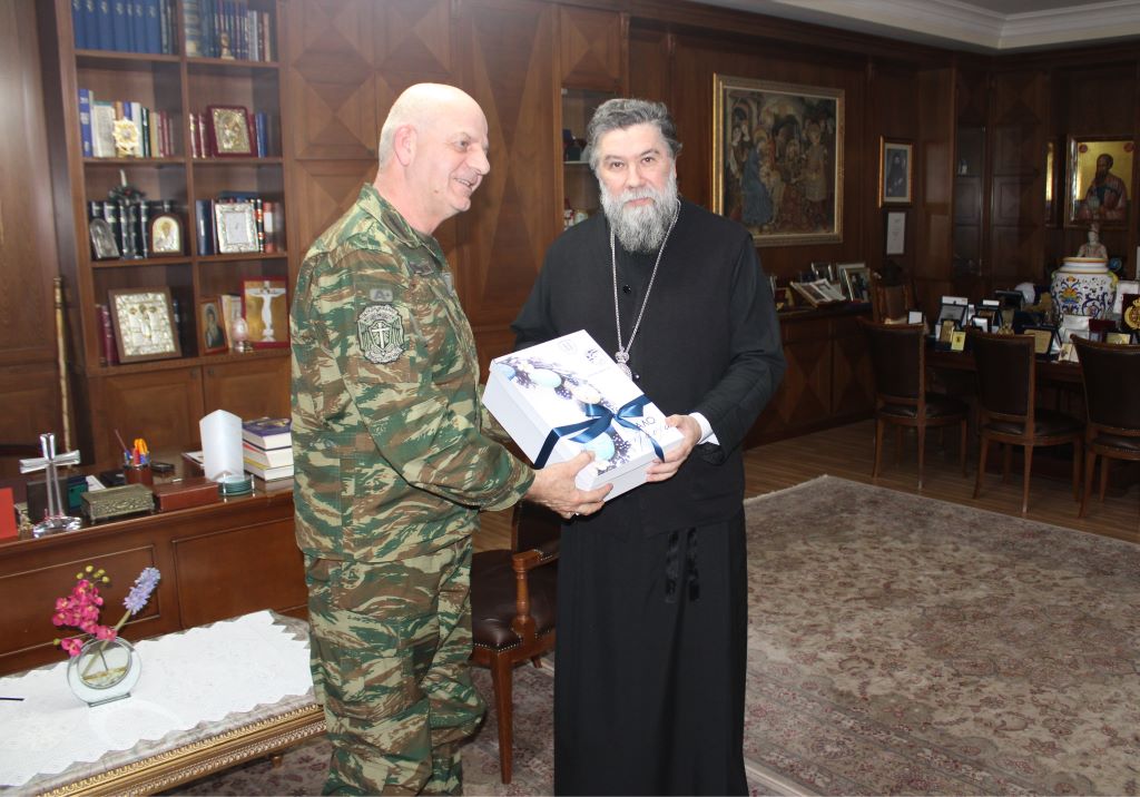 Ο Σεβασμιώτατος συνεχάρη εγκαρδίως τον νέο Διοικητή της Ανώτατης Στρατιωτικής Διοικήσεως Ηπείρου και Μακεδονίας για τα νέα καθήκοντά του, ευχόμενος πλουσία την ενίσχυση και την ευλογία του αγίου Θεού στο υψηλό και ευθυνοφόρο έργο του.