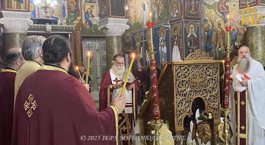 Την Τετάρτη 22 Οκτωβρίου 2025, στον Μητροπολιτικό Ναό του Αγίου Δημητρίου, ετελέσθη Ιερά Αγρυπνία, κατά την οποία ο Σεβασμιώτατος Μητροπολίτης Άρτης κ. Καλλίνικος προεξήρχε της πρωτοχριστιανικής Θείας Λειτουργίας του Αγίου Ιακώβου του Αδελφοθέου. Πρόκειται για μία αρχαία Λειτουργική παράδοση της Εκκλησίας, η οποία χαρακτηρίζεται από τη λιτότητα και τη βαθιά κατανυκτική της ατμόσφαιρα, με έμφαση στον ευχολογικό λόγο. Η τέλεσή της πραγματοποιήθηκε στον χώρο του Σολέα, όπου ο λειτουργός είναι στραμμένος προς τον λαό, σύμφωνα με την αρχαία εκκλησιαστική τάξη.