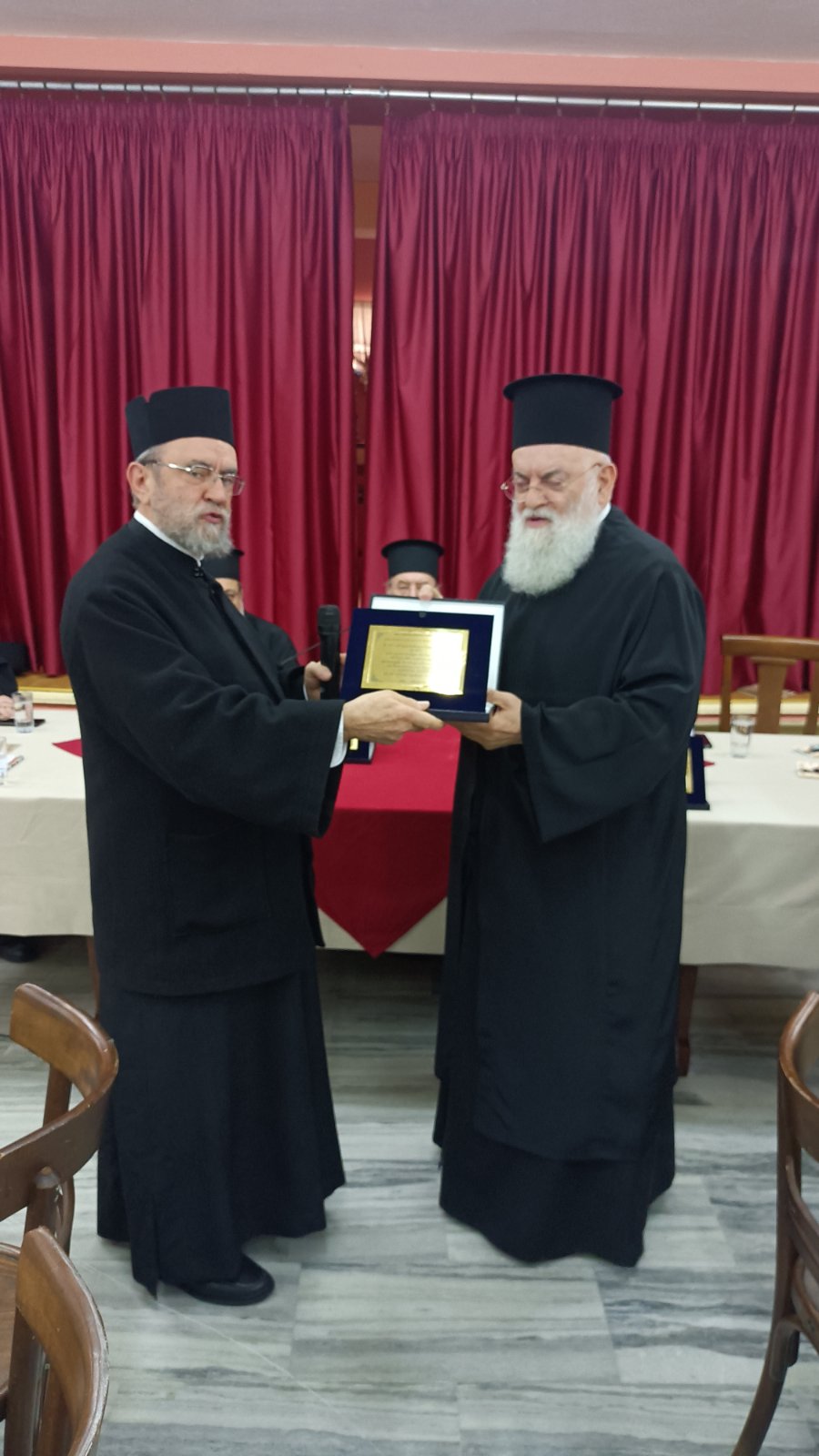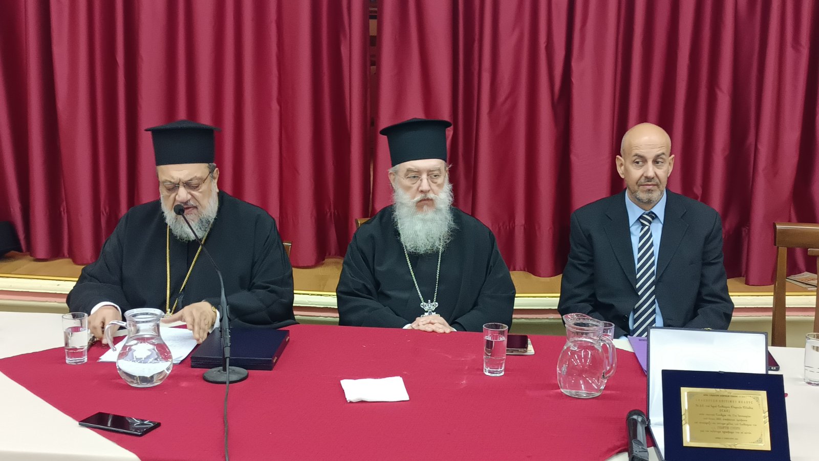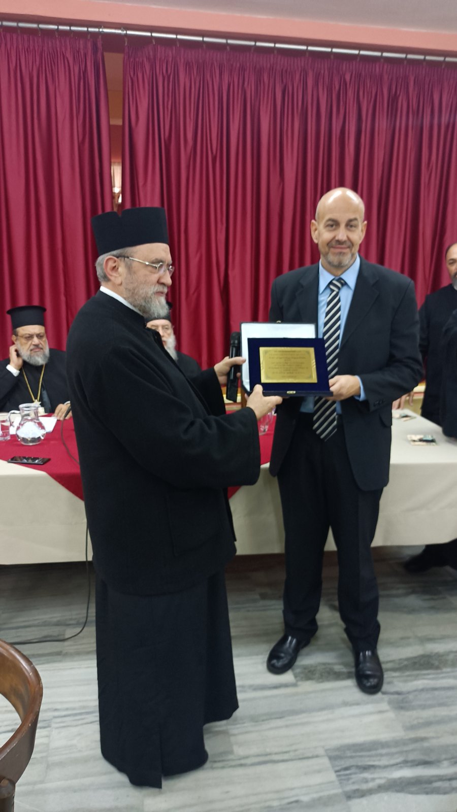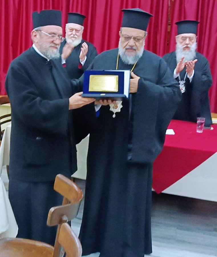 Ο Πρόεδρος του Ι.Σ.Κ.Ε. Πρωτοπρεσβύτερος Γεώργιος Σελλής ευχαρίστησε τον Σεβασμιώτατο Μητροπολίτη Κηφισίας κ. Κύριλλο για όλη την υποστήριξη που παρέχει στον Σύνδεσμο, αλλά και για την παρασχεθείσα αβραμιαία φιλοξενία των συνέδρων στην ενοριακή αίθουσα του Ι. Ν. Αγίου Κοσμά του Αιτωλού. Σε εφαρμογή σχετικών αποφάσεων του Συνδέσμου τιμήθηκαν ως επίτιμα μέλη, όπως ο Κανονισμός ορίζει, ο Σεβασμιώτατος Μητροπολίτης Μεσσηνίας κ. Χρυσόστομος, καθηγητής στη Θεολογική Σχολή του ΕΚΠΑ, ο Πανοσιολογιώτατος Αρχιμανδρίτης Θεόφιλος Λεμοντζής και ο κ. Γεώργιος Στείρης, καθητητής της Φιλοσοφικής Σχολής του ΕΚΠΑ. Ο πρόεδρος απένειμε τις ειδικές τιμητικές πλακέτες.