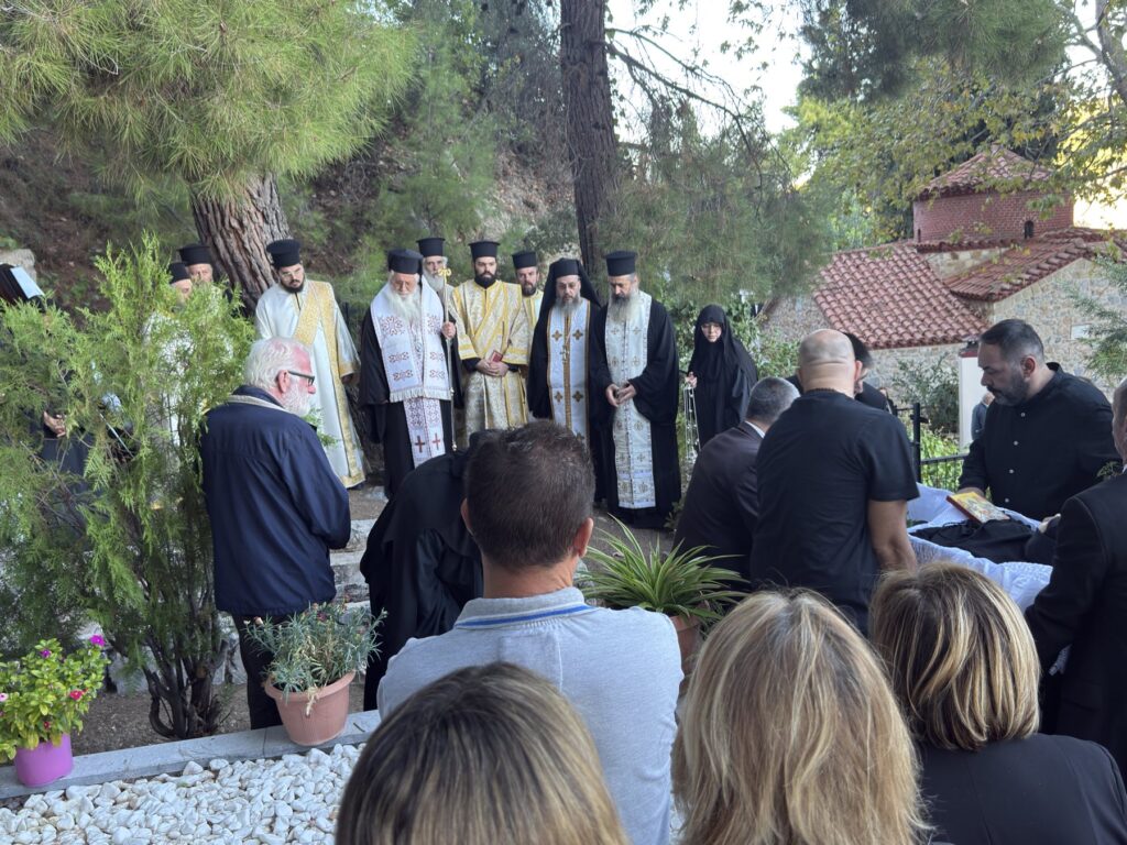 Επίσης, ο Σεβασμιώτατος τέλεσε τρισάγιο στον τάφο του προκατόχου του μακαριστού Μητροπολίτη Θηβών και Λεβαδείας κυρού Νικοδήμου (Γραικού), που βρίσκεται στην Ιερά Μονή, καθώς και για όλους τους κεκοιμημένους, που αναπαύονται στο Κοιμητήριο της Μονής.