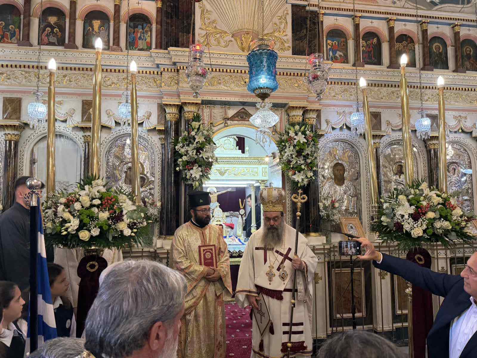 Στις ευλογημένες και αγιοπνευματοφόρες αυτές στιγμές, έδωσαν το “παρών” οι πολιτικές , στρατιωτικές και λοιπές αρχές, μαθητές Σχολείων, σπουδαστές της ΑΕΝ Μηχανικών Χίου και πλήθος πιστών, που γέμισαν τον Ιερό Ναό και όλο τον αύλειο χώρο.