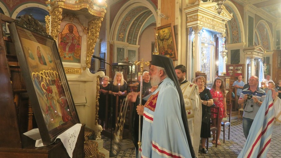 Συνεχάρη τέλος τους δύο Εφημερίους του Ναού για το έργο τους και για τη σχέση υιού προς πατέρα και αντίθετα που τους διέπει και ευχήθηκε σε όλους για τον Δεκαπενταύγουστο.
